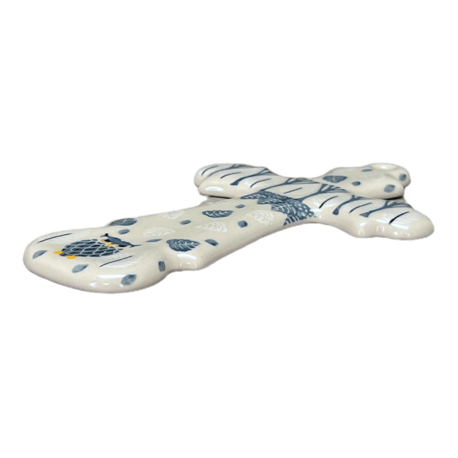 Imagine the mystical gaze of an owl perched quietly in the night, its detailed feathers rendered in shades of teal, blue, and gray, capturing the serene essence of nature. This is exactly what adorns the Polish Pottery Cross from Ceramika Artystyczna in the mesmerizing "Lone Owl" pattern. Standing at 7.75 inches, this splendid cross is not just a decorative piece but a celebration of artistry. Each element, from the small teal flower petals to the dense border of teal leaves, has been meticulously hand-painted, offering a unique story and a whisper of woodland mystery to any space it graces.