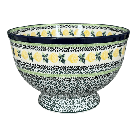 Bowl, Round, Deep, Pedestal, 10" in "Lemons and Leaves" by Ceramika Artystyczna | A215-2749X