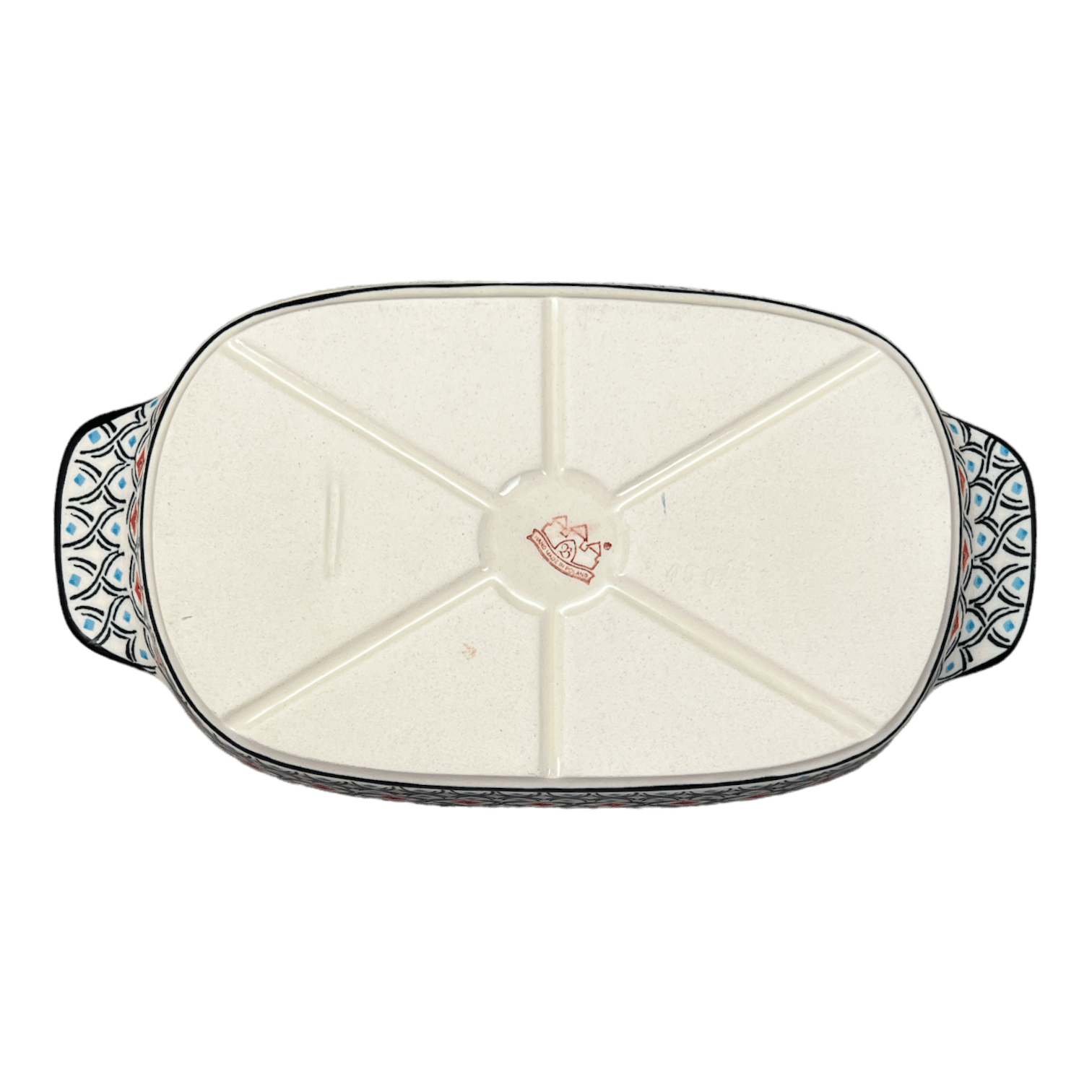 You may safely use Polish pottery in the microwave and in a conventional oven at temperatures up to 425°F. We recommend you heat your stoneware up to temperature with the oven. Make sure to always cover the entire bottom of the dish when baking. For example, you don't want to put a single chicken breast in the center of a baker and leave the rest of the surface area uncovered, as the empty spots will heat at a different rate than those with food on them. Polish pottery does not like quick changes in temperature or uneven heat sources, and thermal shock WILL result in a broken dish.