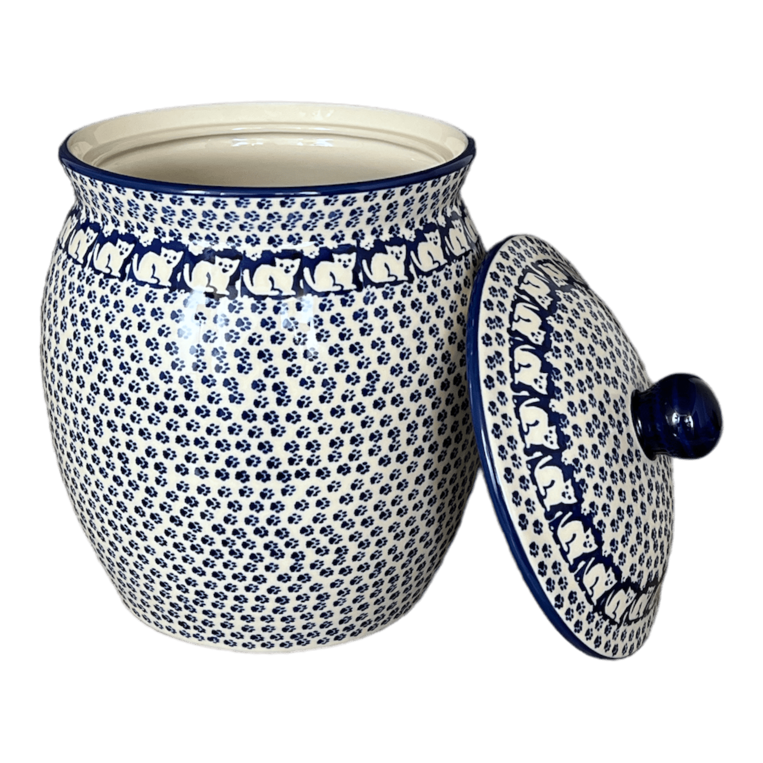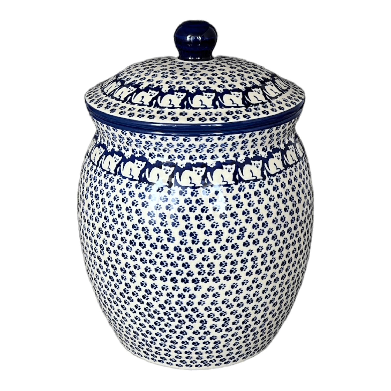 This Polish Pottery 5 Liter Container makes the perfect Cookie Jar or Counter canister. Plan on storing quantity, because at 11.5 " high and 8.5" wide its barrel shape will provide the space.