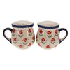 Imagine a dash of whimsy and a sprinkle of charm on your dining table with the delightful Polish Pottery Salt & Pepper Shakers from Manufaktura. These aren't just any ordinary shakers; shaped like cozy little mugs, they're crafted in the enchanting "Snowflake Love" pattern. Picture this: tiny blue snowflakes dancing on a pristine white background, bordered by a sequence of petite hearts in hues of blue and red. This design isn't just beautiful; it's a canvas of love and winter joy, making every meal a picturesque scene right out of a snow-globe!