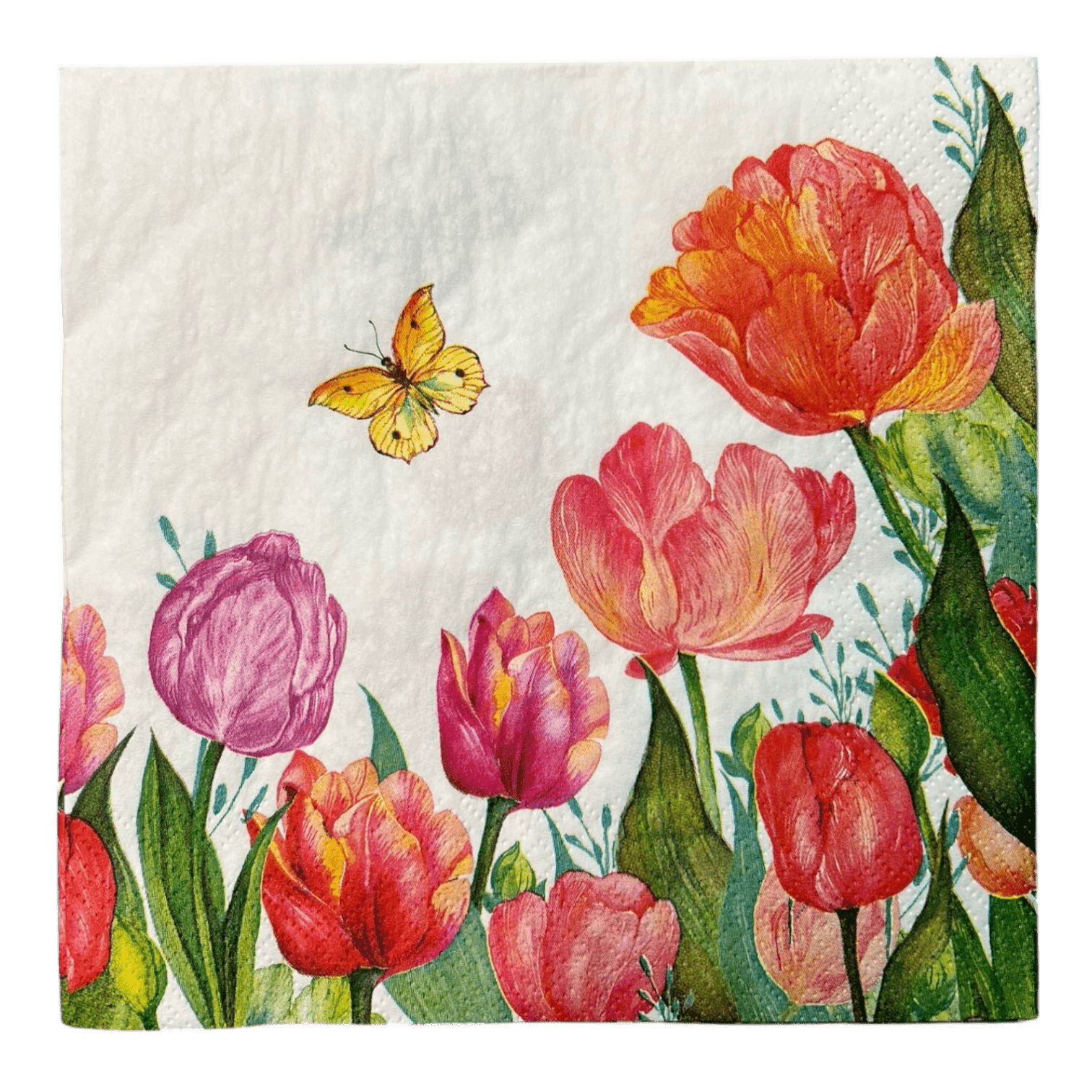Paper Dinner Napkins in "Tulips and Butterflies" by MAKI | SDWI-008001