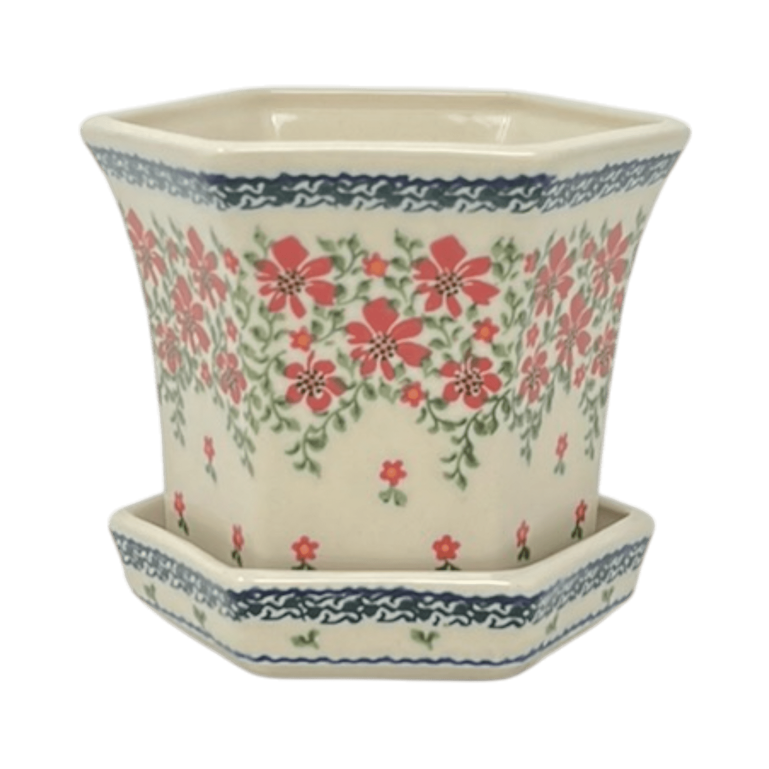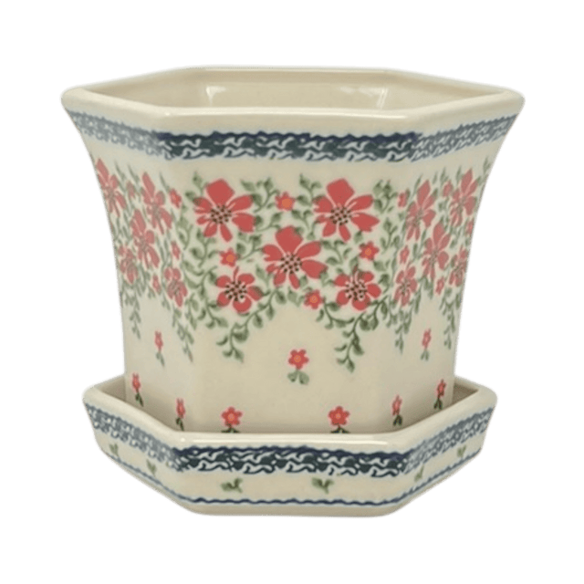 Flower Pot, Hexagonal, 5" Small in "Draping Red Florals" by Galia | GDN08-PW3