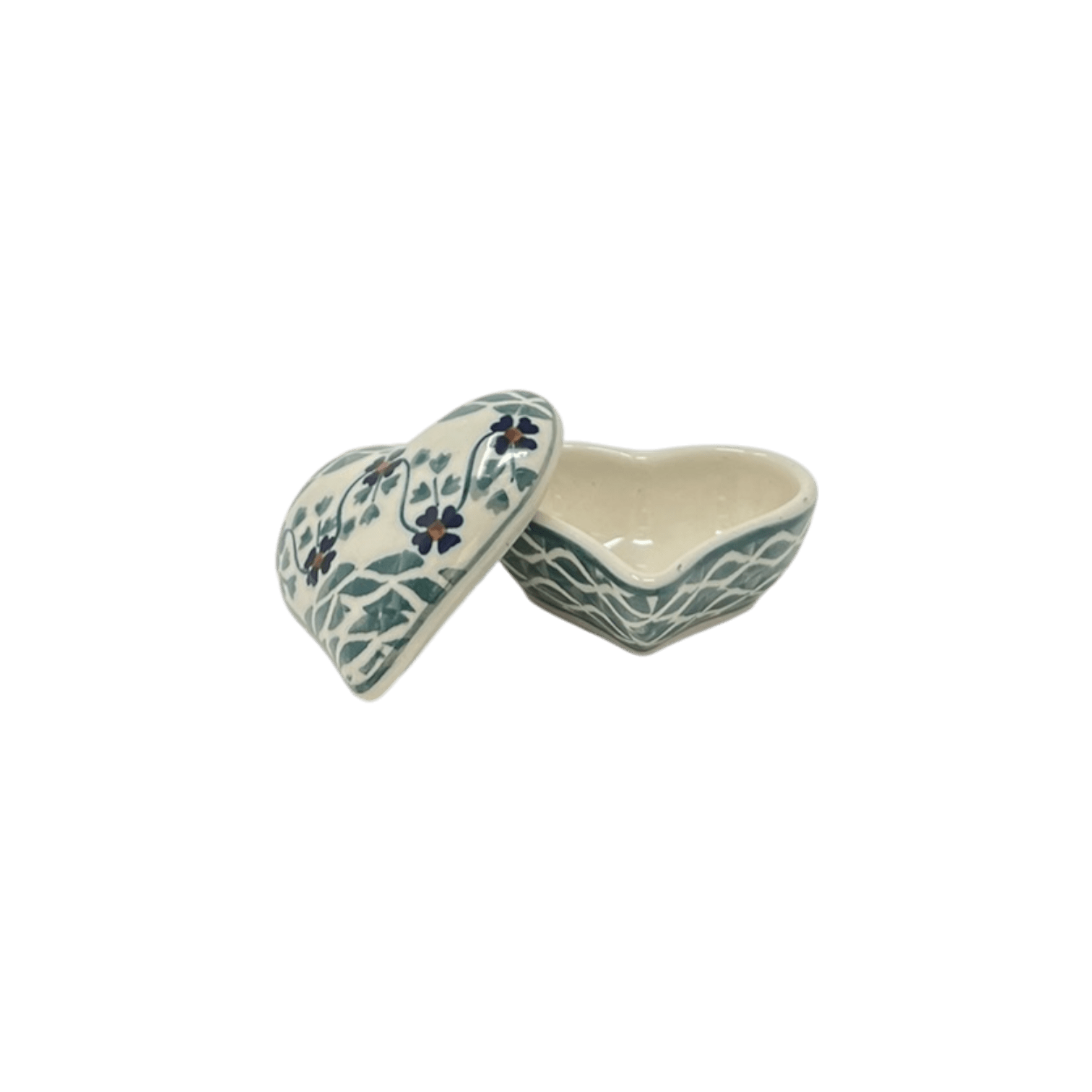 These beautiful Polish Pottery heart boxes are perfect for storing jewelry, loose change, or other small valuables!