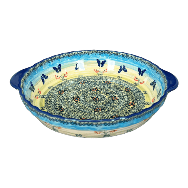 Baker, Round, Pie Plate, Handles, 9.75" in "Butterflies in Flight" by Manufaktura | Z148S-WKM is backordered and will ship as soon as it is back in stock.