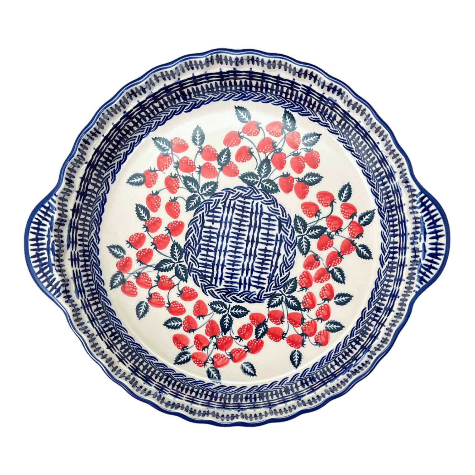 Introducing the Polish Pottery 9.75" Pie Plate with Handles by Manufaktura in the charming "Fresh Strawberries" pattern (AS70). Get ready to bake the perfect pie and experience the difference that Polish Pottery brings to your kitchen. From your very first pie to the very last bite, you'll fall head over heels in love with this exquisite pie plate.
