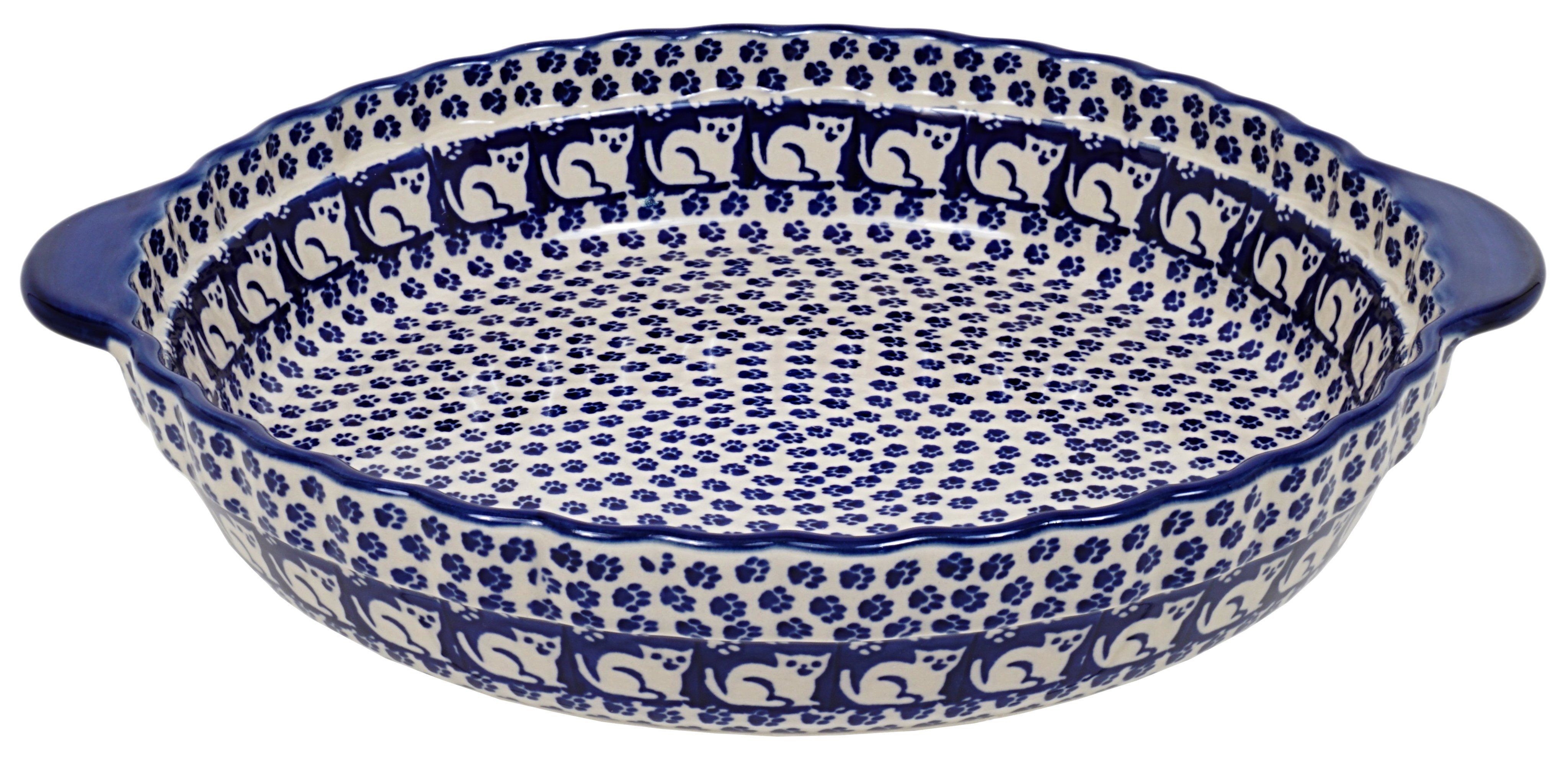 Imagine a pie plate that not only looks stunning but also cooks like a dream. That's exactly what you'll get with our Polish Pottery. The "Kitty Cat Path" pattern is a delightful combination of Cats in a predominantly Blue color with charming White accents. It adds a touch of whimsy and elegance to your table, making every meal feel like a special occasion.