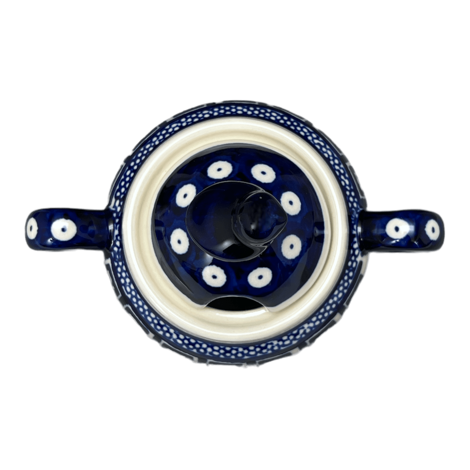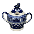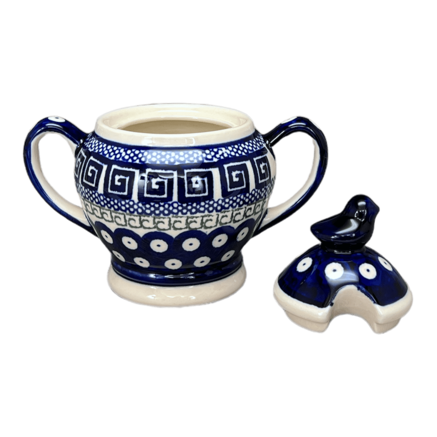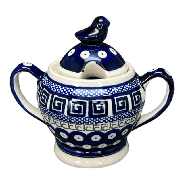 Imagine a touch of enchanting Polish folklore right on your dining table with the delightful Polish Pottery Sugar Bowl from Zaklady. Not just any ordinary sugar bowl, this charming piece, adorned with the playful "Grecian Dot" pattern, captures the essence of traditional Polish craftsmanship. Picture the classic white dots dancing across a deep blue background, bordered by whimsical Grecian square swirls in harmonious shades of blue and green. And perched atop? A quaint little bird, adding an extra splash of cuteness and whimsy to your tea-time rituals. This isn't just a sugar bowl; it's a centerpiece that sparks conversation and admiration.