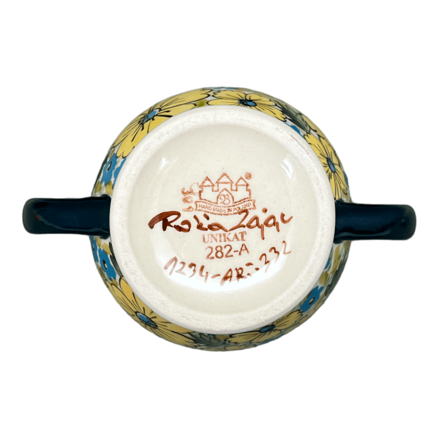This isn't just any pottery; it's a Signature piece from Zaklady, crafted in the historic town of Boleslawiec, Poland. Artists of the highest calibre, who have earned the privilege to design and oversee their creations from start to finish, lovingly hand-paint each sugar bowl. Their dedication ensures that each piece is not only unique but also a limited edition, adorned with the "UNIKAT" stamp and the artist's own signature. This level of craftsmanship turns every bowl into a coveted collector's item, infusing routine kitchenware with a breath of artistic excellence and exclusivity.