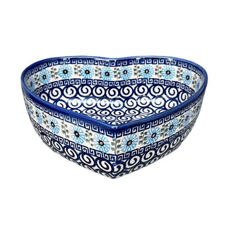 Bowl, Heart-Shaped, 8" X 8.75" in "Blue Daisy Spiral" by Andy | NDA368-38