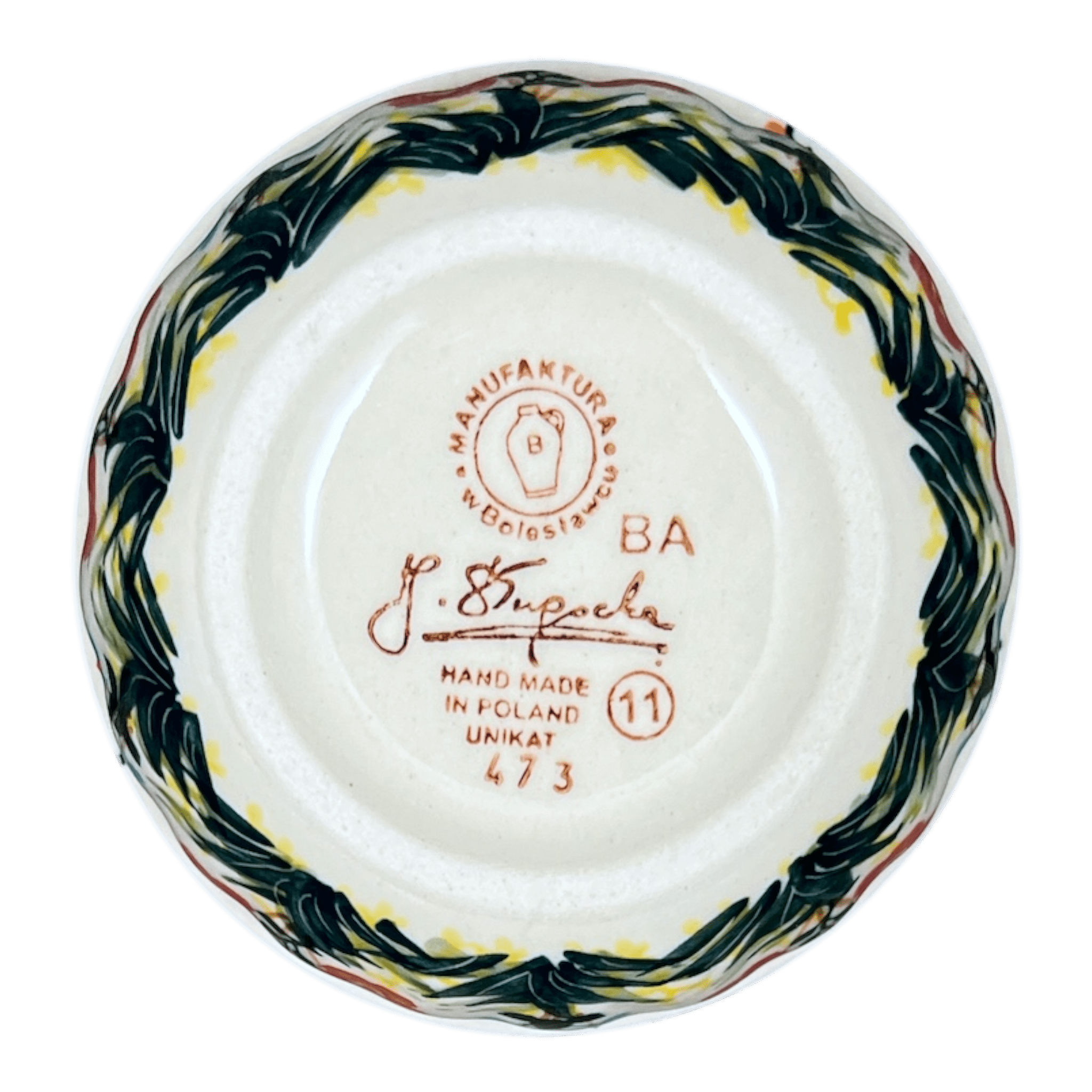 But the beauty of this Polish Pottery piece extends beyond its visual appeal. Each bowl is a testament to the exceptional artistry of Manufaktura's designers, who are not just artisans but visionaries in their field. These Signature pieces bear the unique "UNIKAT" stamp, a mark of unparalleled craftsmanship and exclusivity. Every detail, from the band of orange grass to the delicate floral patterns, is meticulously hand-painted by artists who oversee the production from start to finish. Owning this bowl means possessing a rare piece of art, limited in supply and treasured by collectors worldwide. It’s not merely a dish; it’s a masterpiece signed by the creator, a story painted in every stroke.