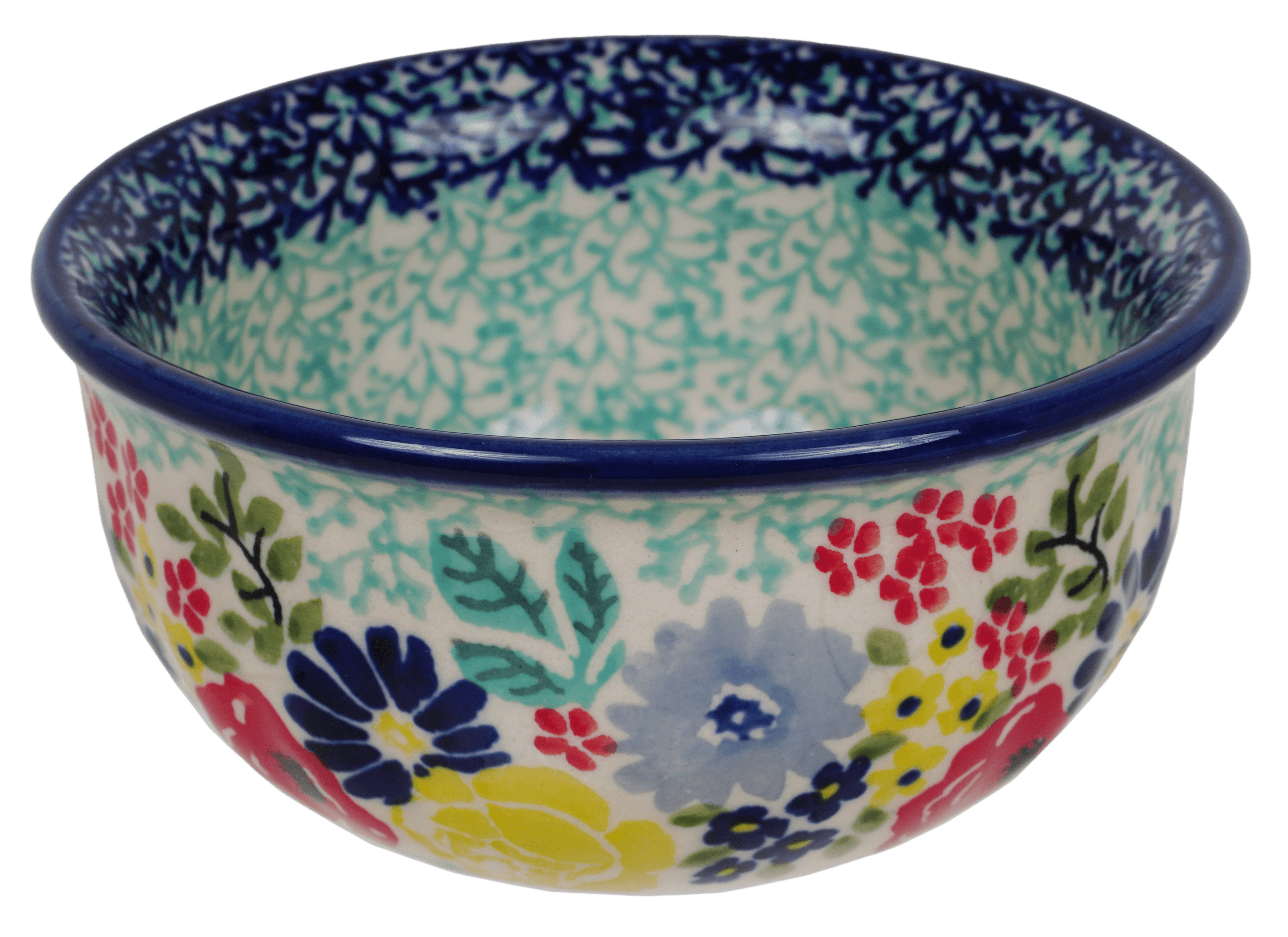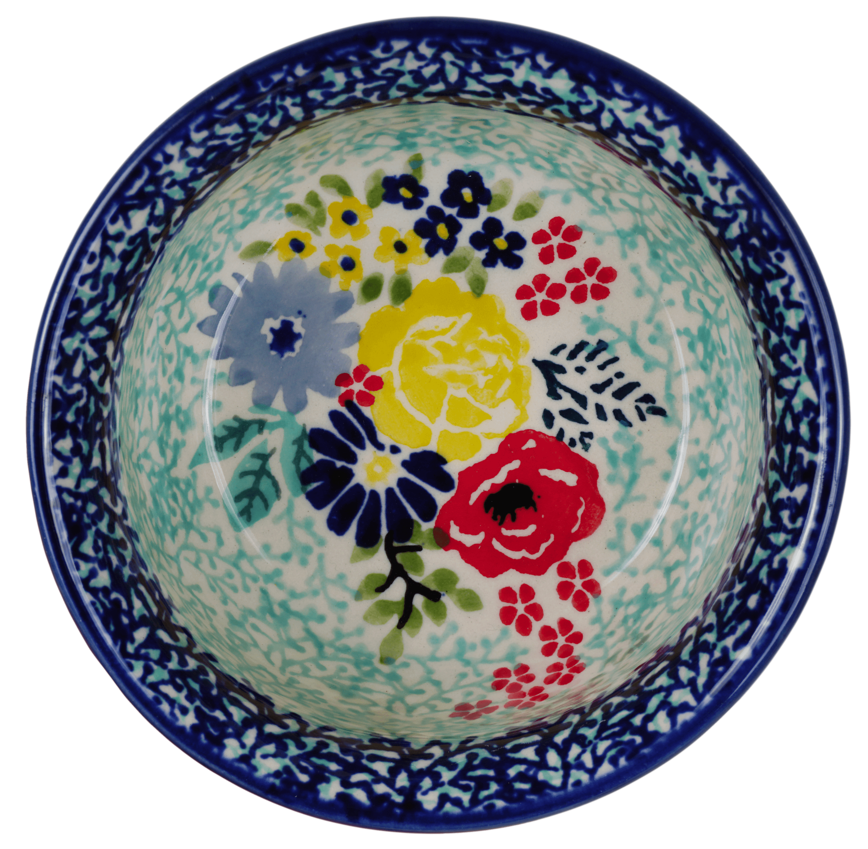 Imagine a splash of vibrant colors and intricate designs that turn a simple meal into a festive gala! Introducing the Polish Pottery Bowl from Manufaktura, a masterpiece adorned with the delightful "Garden Party" pattern. This charming 4.5" bowl is the perfect size for your favorite dips or condiments, transforming everyday dining into a joyful celebration. Its lively design features an enchanting mix of red, yellow, and blue flowers that dance around a center of light turquoise vines, set against a crisp white background. The colors are so vivid, you can almost smell the fresh blooms of a garden in full swing!