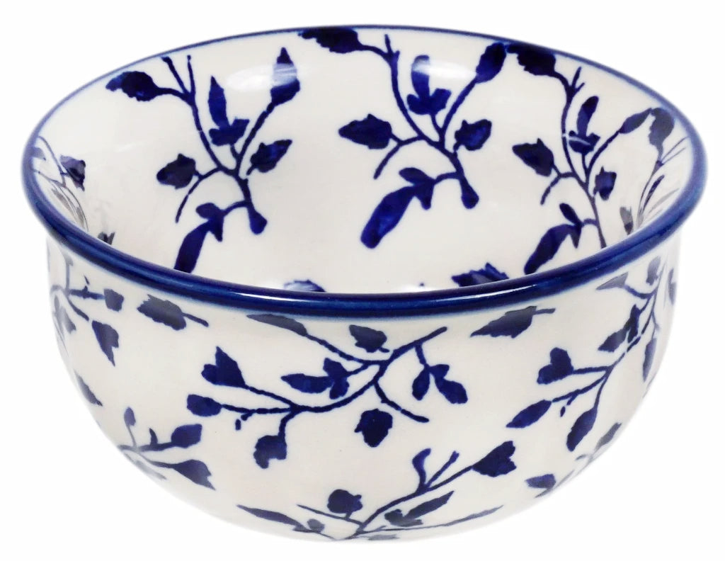 Introducing the enchanting "Blue Spray" Polish Pottery Bowl from Manufaktura, a treasure that blends tradition with a splash of nature-inspired beauty. Crafted in the heart of Boleslawiec, Poland, this 4.5" bowl is the perfect vessel for your favorite dips or condiments. Each bowl is hand-painted by skilled artisans using the "punching" technique of hand stamping, where each design is meticulously created to celebrate the simplicity and charm of the traditional Polish pottery patterns. The "Blue Spray" pattern features a delightful tree branch motif in a serene blue that dances across a crisp white background, making each piece a unique work of art.