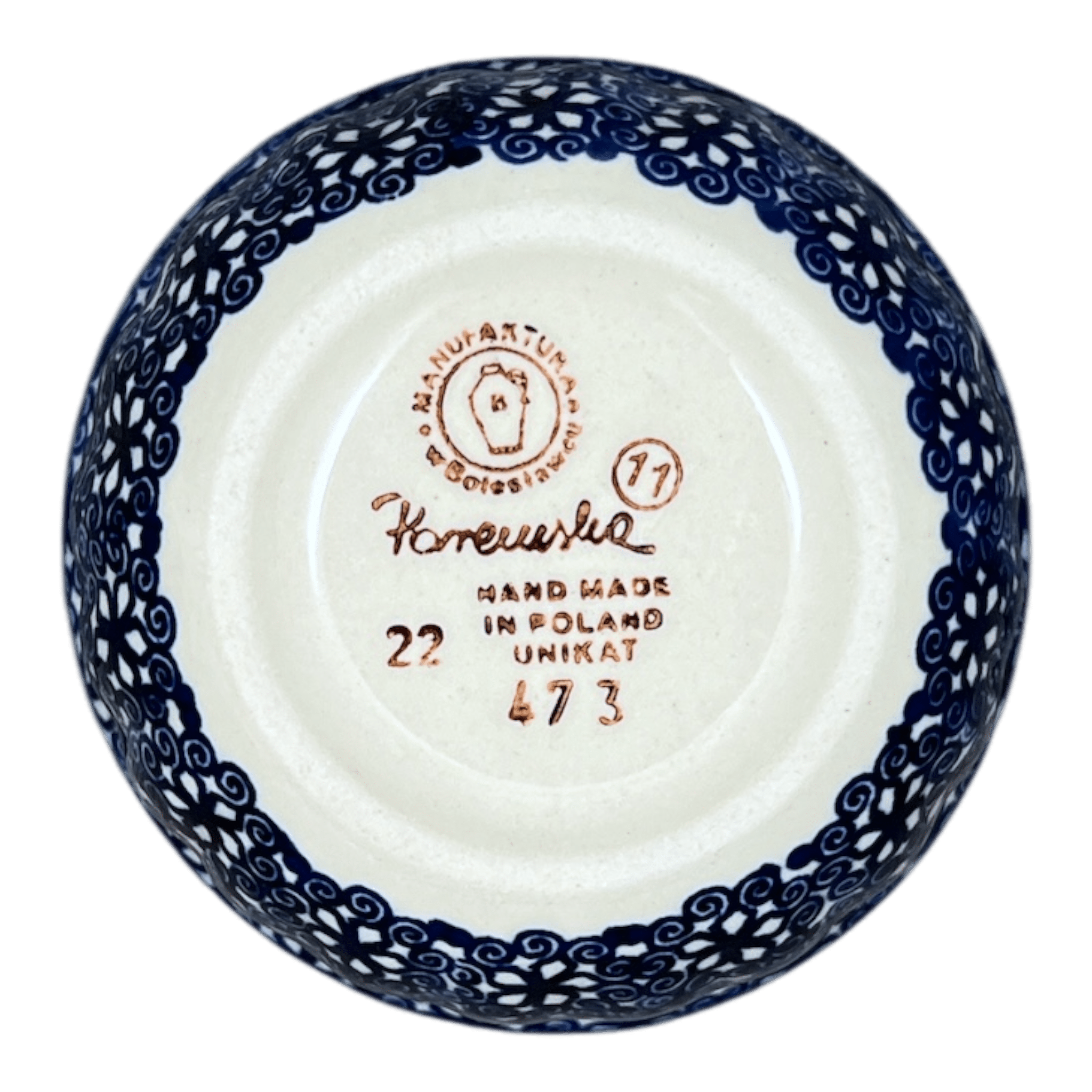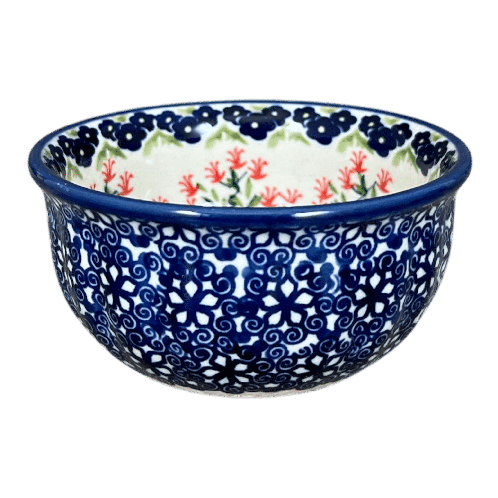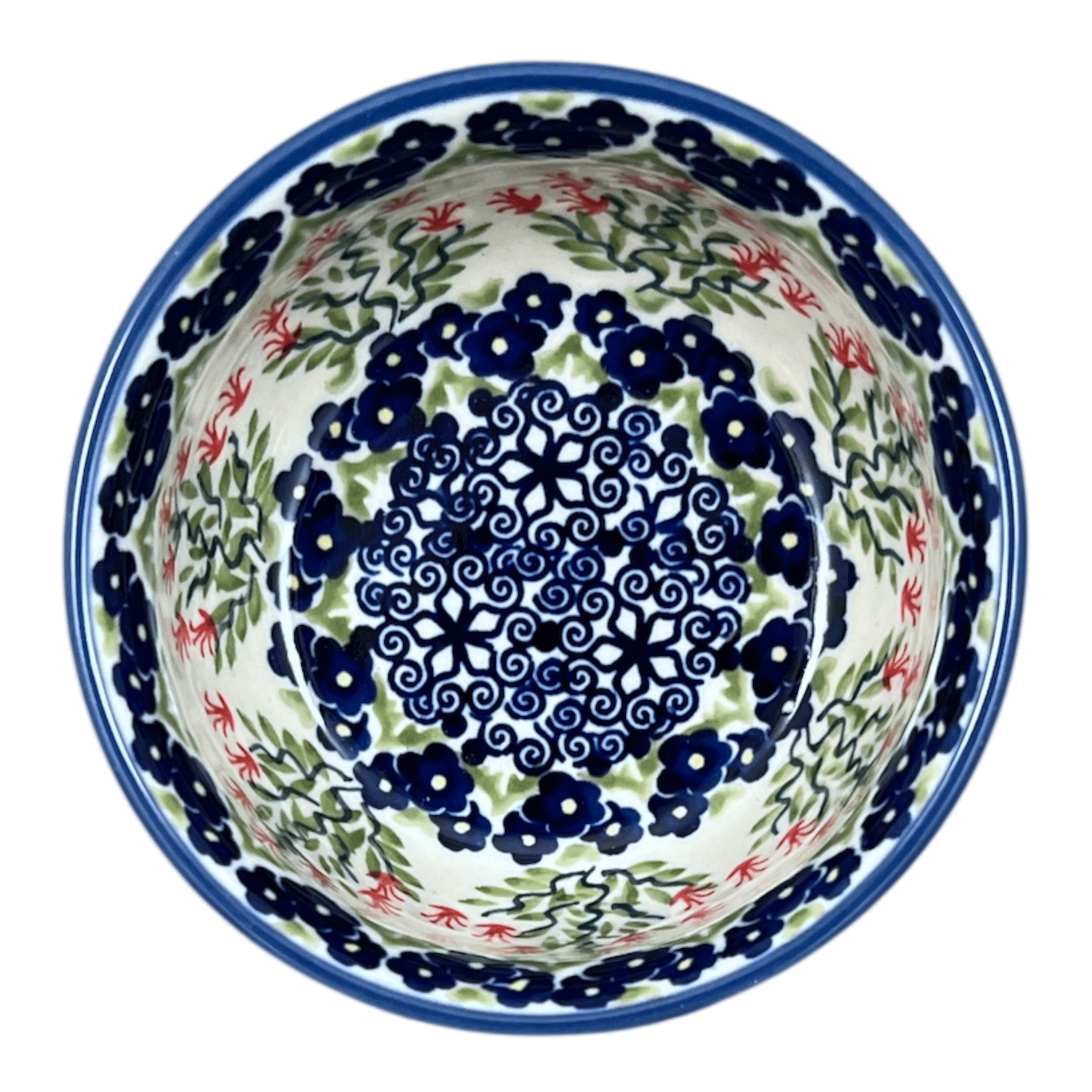 Step into a world where art meets utility with the enchanting Manufaktura 4.5" Polish Pottery Bowl. Handcrafted in the heart of Boleslawiec, Poland, this delightful piece boasts the vibrant "Burning Thistle" pattern, a captivating dance of red blossoms, teal green stems, and tiny green leaves encircling a mesmerizing core of blue swirls set against a crisp white backdrop. Each detail of this intricate design is a testament to the masterful artistry achieved by Manufaktura's top-tier artists, whose skillful hands breathe life into every brush stroke.