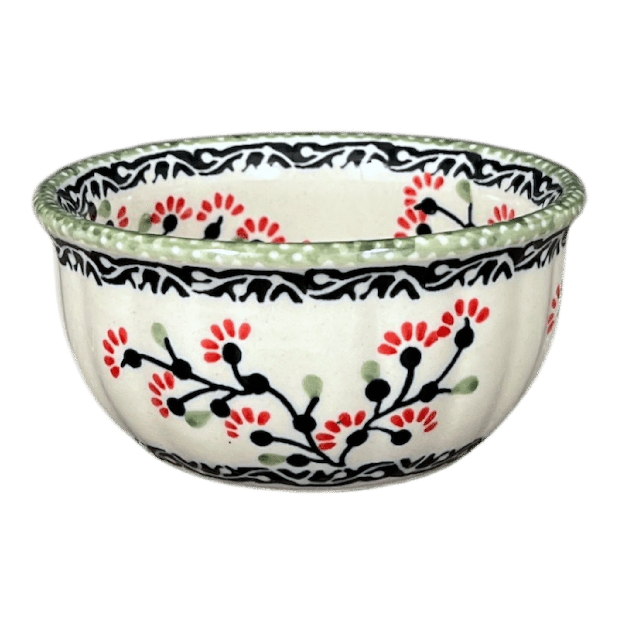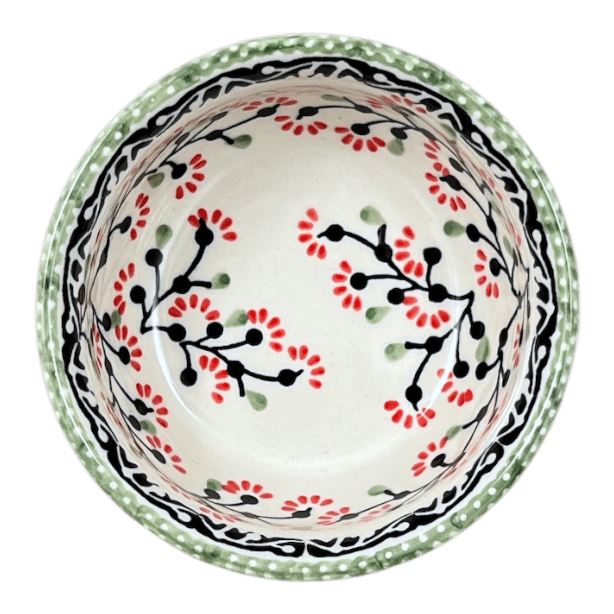 Introducing the Polish Pottery 4.5" Bowl by Manufaktura, featuring the vibrant and enchanting "Cherry Blossoms" pattern (DPGJ). This bowl is not just your ordinary bowl - it's perfect for dips or condiments, adding a touch of elegance to your dining experience.