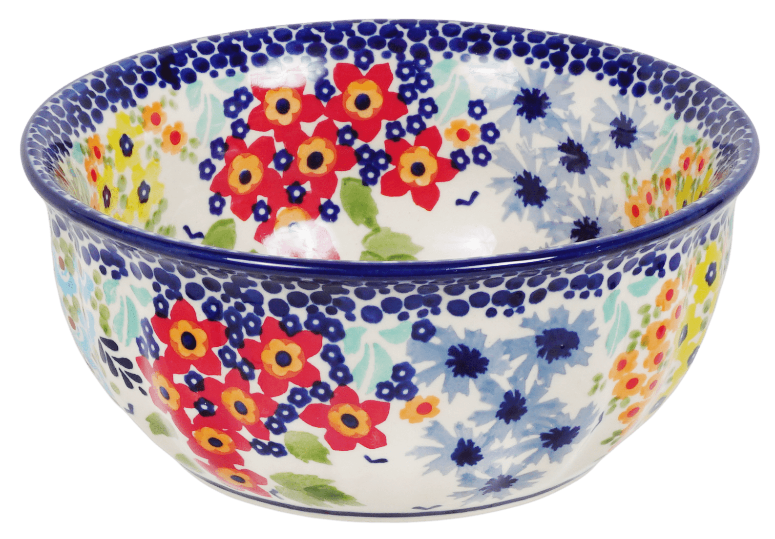 Imagine a bowl that does more than just hold your food; it tells a story of craftsmanship and tradition. This isn't just any bowl; it's a Polish Pottery Bowl from Manufaktura, boasting a captivating 6.5-inch canvas of artistic mastery. Nestled in the heart of Boleslawiec, Poland, this hand-painted gem is adorned with the vibrant "Brilliant Garden" pattern. Picture large, detailed clusters of red, yellow, blue, and cadet gray flowers, dancing around a pristine white background—each one inviting your gaze to linger a little longer. Perfect for soups, salads, or even as a charming mixing bowl, its versatility is matched only by its beauty.