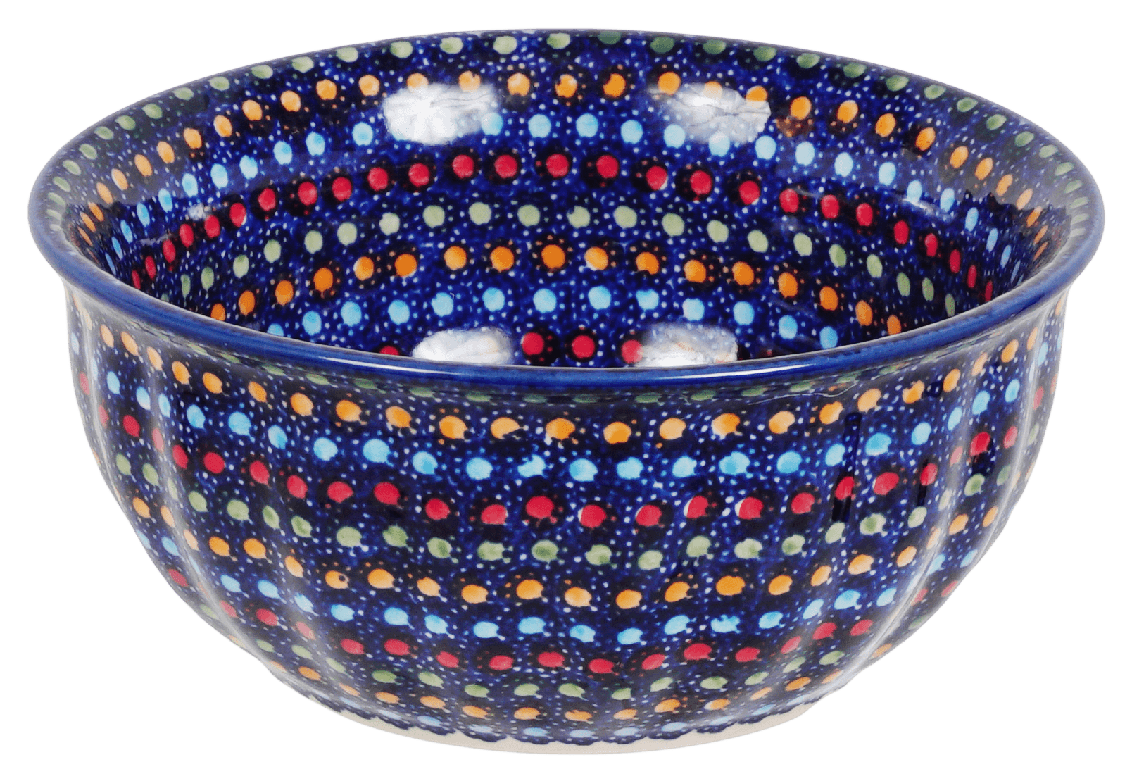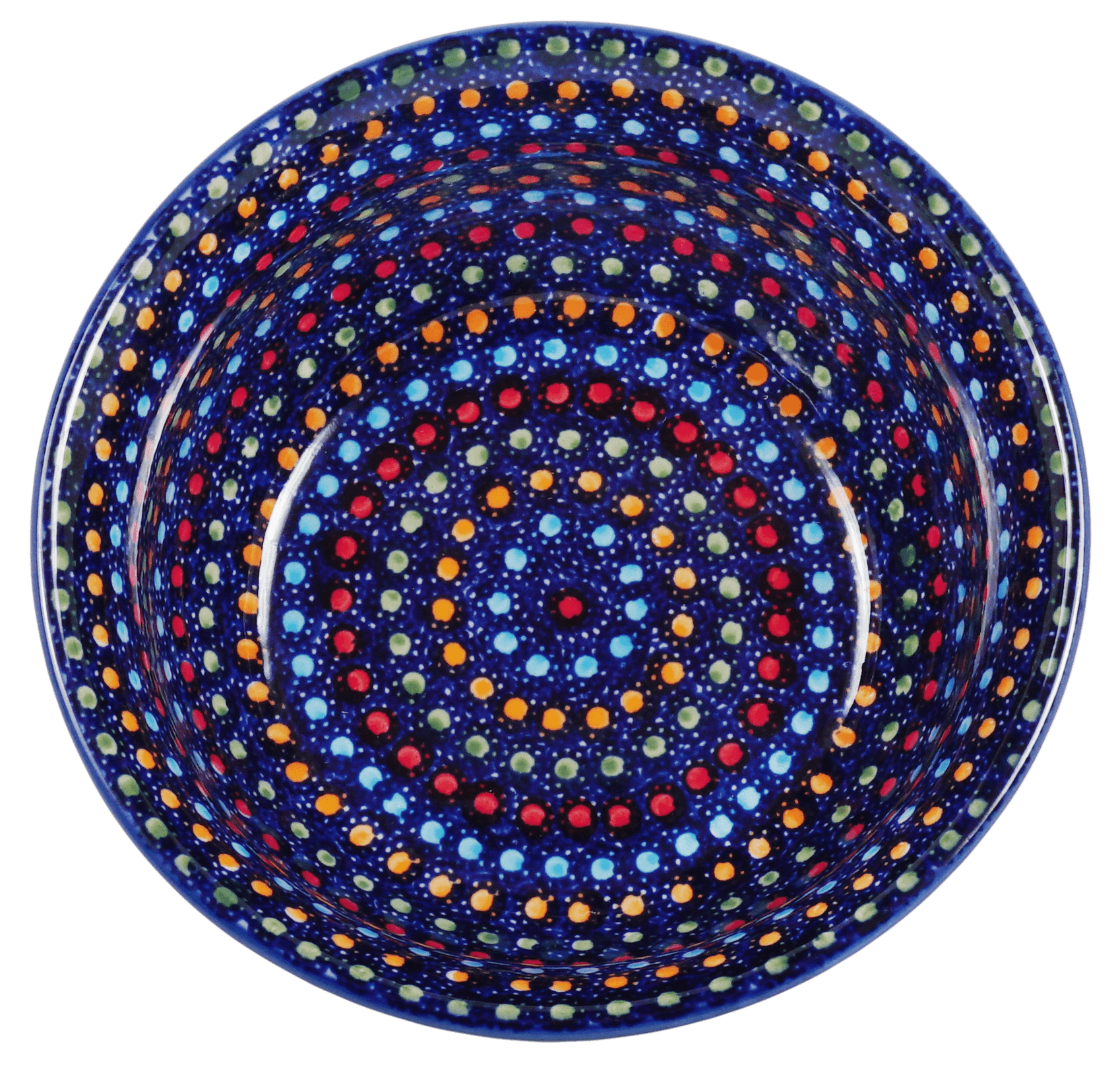 Imagine a bowl that not only serves your favorite dishes but also doubles as a centerpiece of artistry and tradition. The Manufaktura 6.5" Polish Pottery Bowl in the vibrant "Neon Lights" pattern brings this vision to life! Hand-painted in the heart of Boleslawiec, Poland, this bowl is a testament to the craft that has put Manufaktura on the map since 1992. Each bowl is carefully crafted with a predominantly blue background, sprinkled with tiny white dots, and adorned with lively red, green, orange, and blue dots that dance around the rim, bringing a splash of color and excitement to any meal.