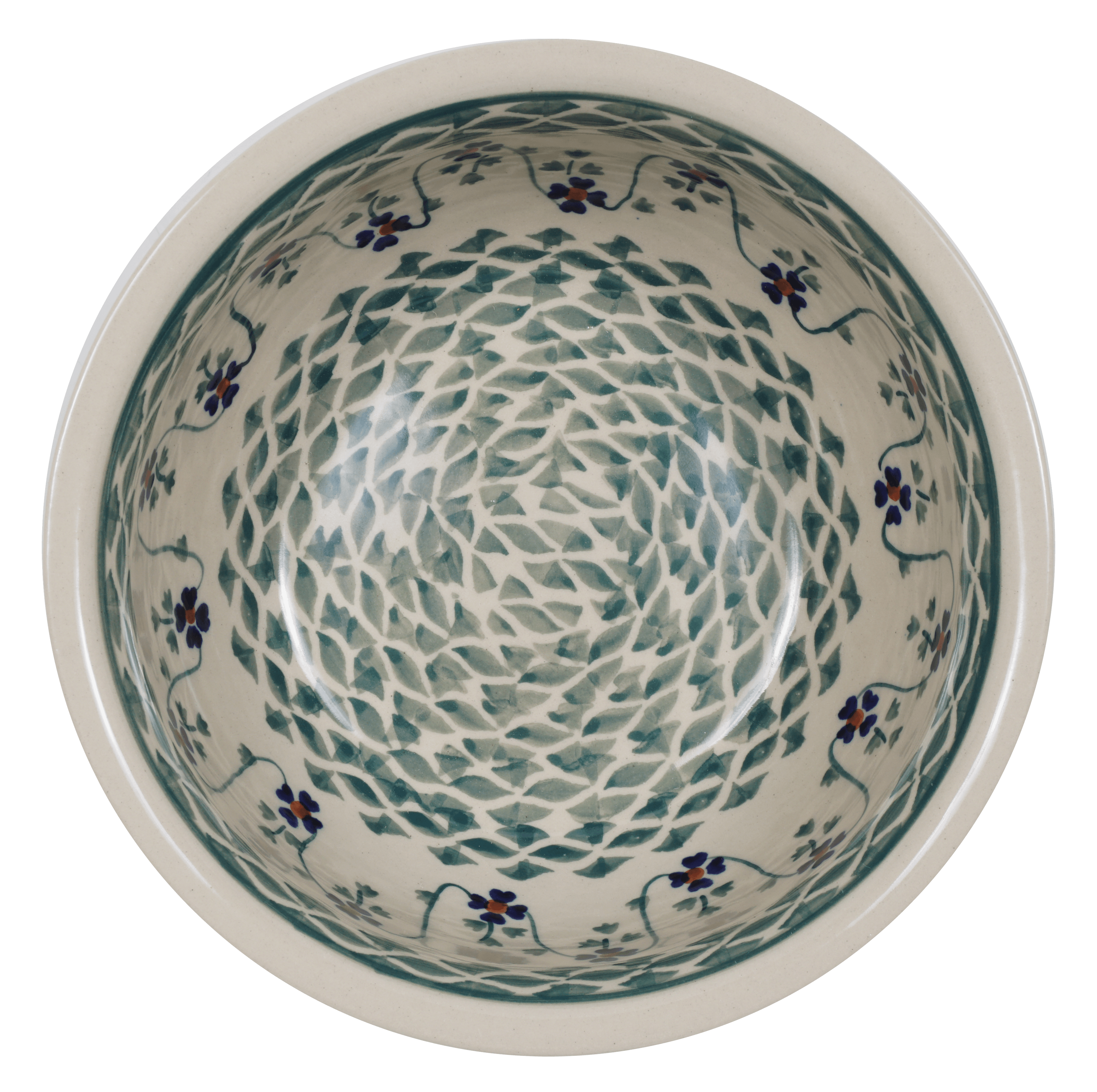 Introducing the stunning Polish Pottery 6.5" Bowl by Manufaktura in the enchanting "Woven Pansies" pattern! This versatile bowl is not only perfect for soups, salads, and pastas, but can also be used as a small mixing bowl. The "Woven Pansies" pattern is a true work of art, featuring design elements that incorporate beautiful flowers in a predominantly Green color with accents in White and Blue.