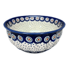 The "Peacock Dot" pattern is a work of art in itself. With its intricate design elements incorporating peacock and dots, it creates a mesmerizing visual feast for the eyes. Predominantly blue with accents in white and brown, this pattern will add a touch of elegance to any table setting. Each bowl is carefully hand-painted by skilled artisans in Boleslawiec, Poland, ensuring that every piece is unique and of the highest quality.