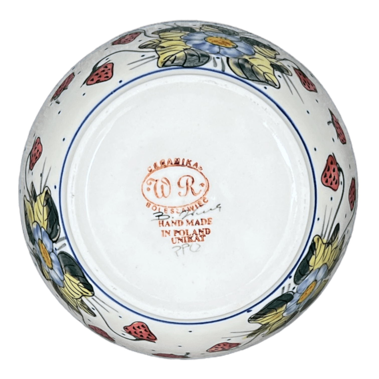Bowl, Round, 7", WR (WR12C) in "Strawberries & Blossoms" by W.R. Ceramika | WR12C-WR2