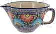 Imagine a kitchen where every tool and utensil is not only functional but a piece of art, exuding charm and vibrant colors that dance in the light. Enter the Polish Pottery Bowl from Manufaktura, a stunning 2.5-quart batter bowl that transforms ordinary baking into an extraordinary experience. Handcrafted in the picturesque town of Boleslawiec, Poland, this bowl features the lively "Fiesta" pattern, a symphony of colors and designs that will make your kitchen sing. Picture yourself whisking eggs or mixing a batch of pancake batter in a bowl adorned with a dazzling array of flowers in shades of light blue, pink, and a striking splash of orange, set against a crisp white background with playful blue dots.