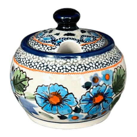 Bowl, Round, Bubble, Sugar Bowl, Small, 3.5" in "Blue Tulips" by Zaklady | Y729-ART160