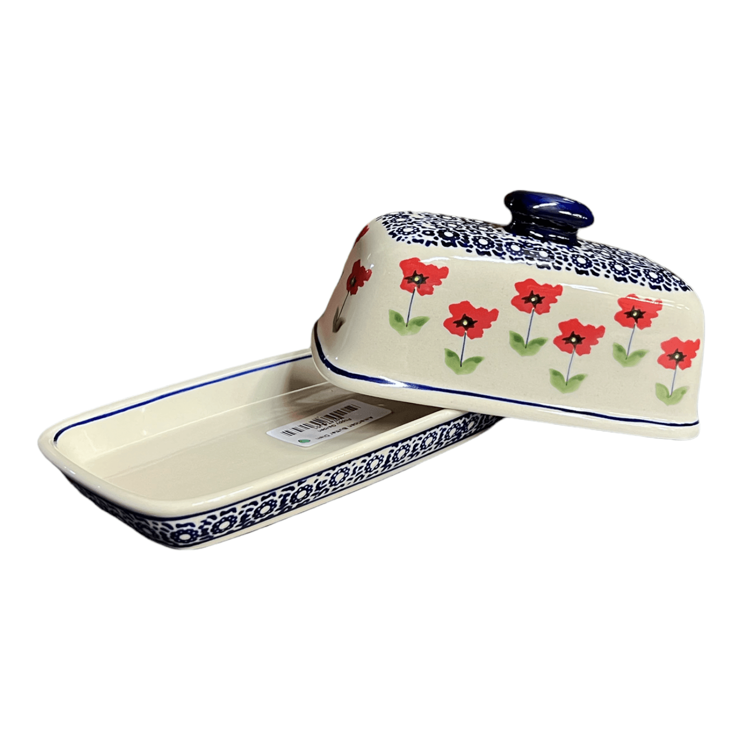 Butter Dish, American, 4" x 7.5" in "Poppy Garden" by Manufaktura | M074T-EJ01 is backordered and will ship as soon as it is back in stock.