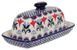Measuring at 4" x 7.5" x 4", this American Butter Dish is the perfect size for your stick of butter or margarine. It is hand-made and hand-painted in Boleslawiec, Poland by talented artisans who have perfected the art of Polish Pottery. Not only is this butter dish functional, but it also adds a pop of color to your home. Mix and match with other pieces from our collection to create stunning combinations that will leave your guests in awe.