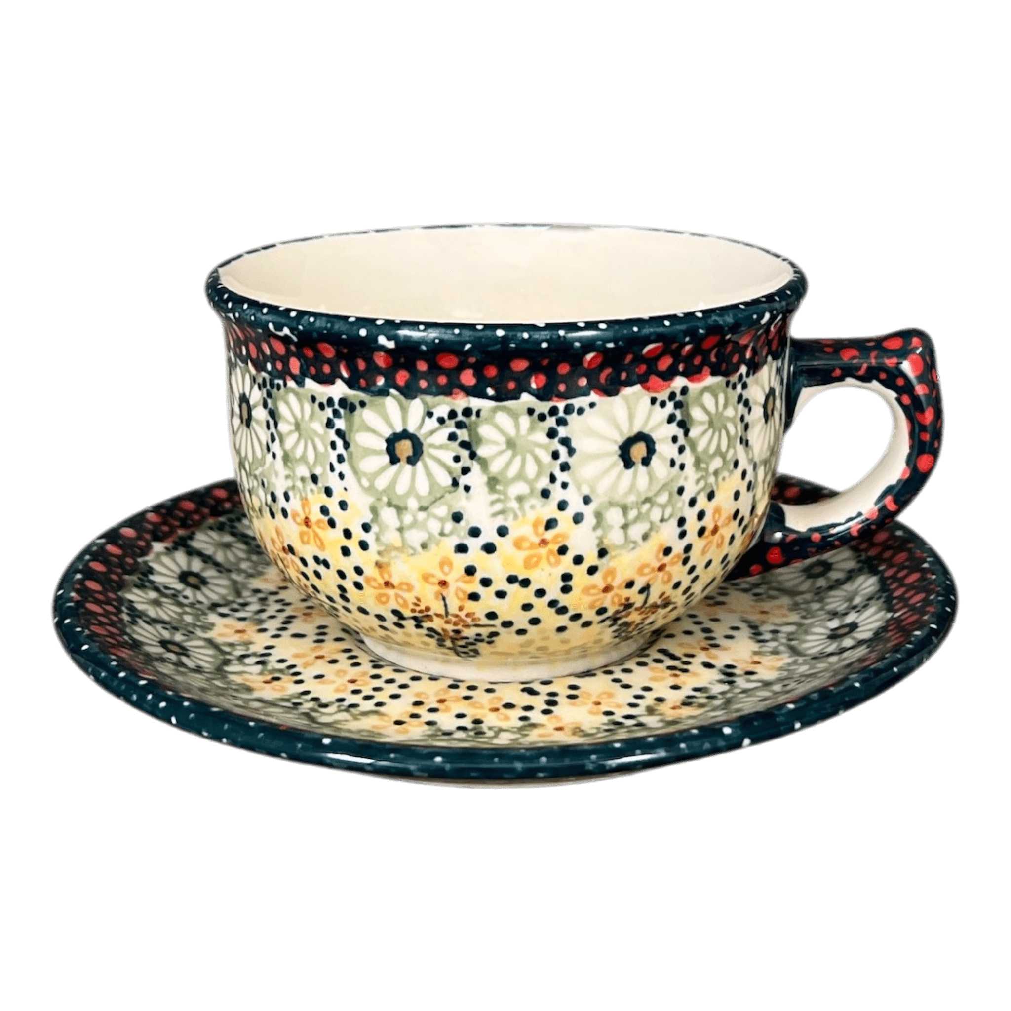 Cup & Saucer, 10 oz Canadian in "Sunshine Grotto" by Manufaktura | F036S-WK52 is backordered and will ship as soon as it is back in stock.
