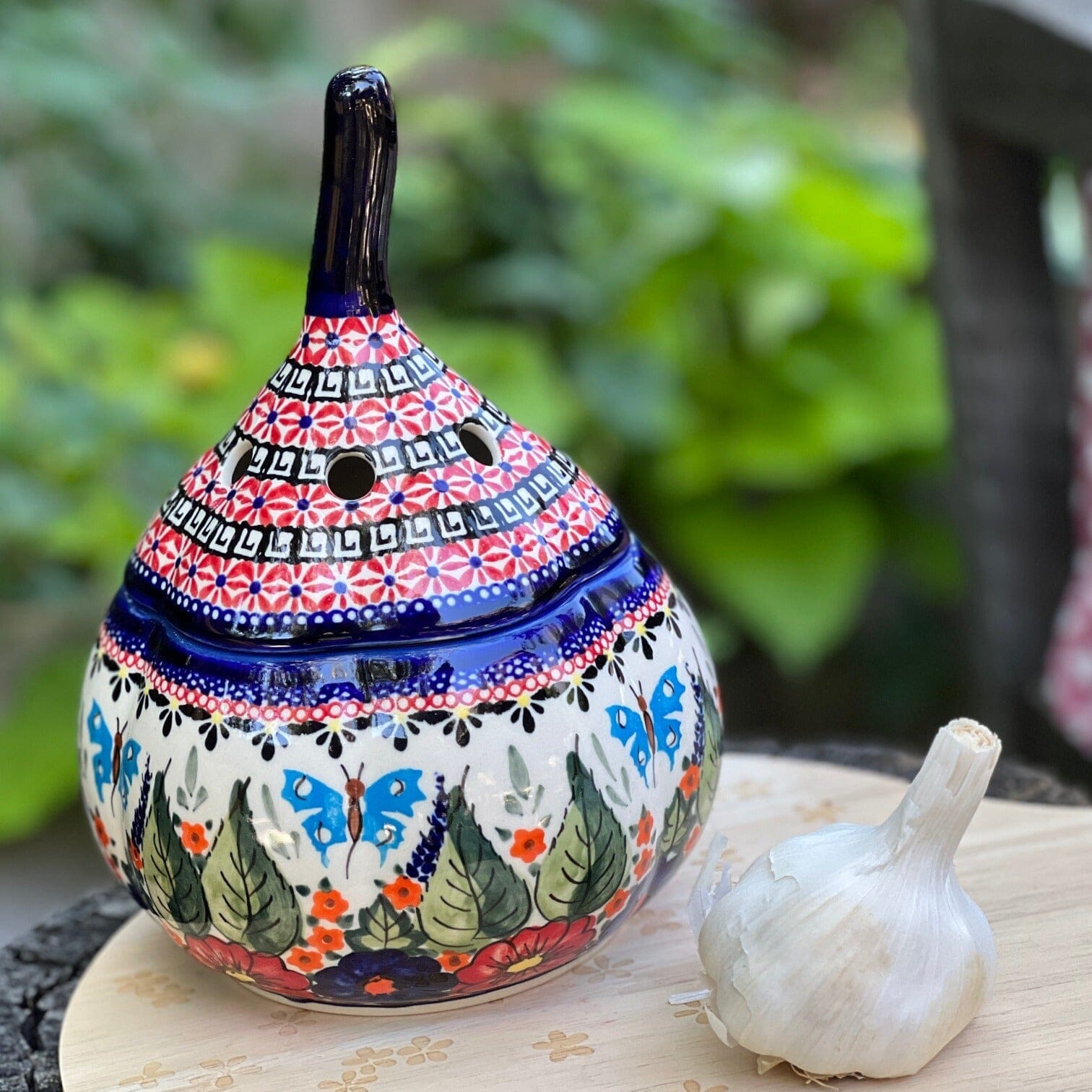 Garlic Keeper, 8.5" Large in "Emerald Mosaic" by Zaklady | Y1835-DU60 is backordered and will ship as soon as it is back in stock.