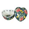 But this isn’t just any decorative piece; it’s a testament to unparalleled artistry. The "Tropical Love" pattern falls under the 'Exquisite' category, representing the zenith of artistic achievement in Polish pottery. Each box is a canvas where master artists from Ceramika Artystyczna, a revered workshop in Boleslawiec, Poland, wield their brushes. Hand-painted and crafted with meticulous care, these pieces are not just pottery; they're proud declarations of artistic heritage. As functional as they are beautiful, these heart boxes withstand the rigors of daily use. They’re safe for the dishwasher, microwave, freezer, and oven, making them a perfect combination of durability and design excellence.