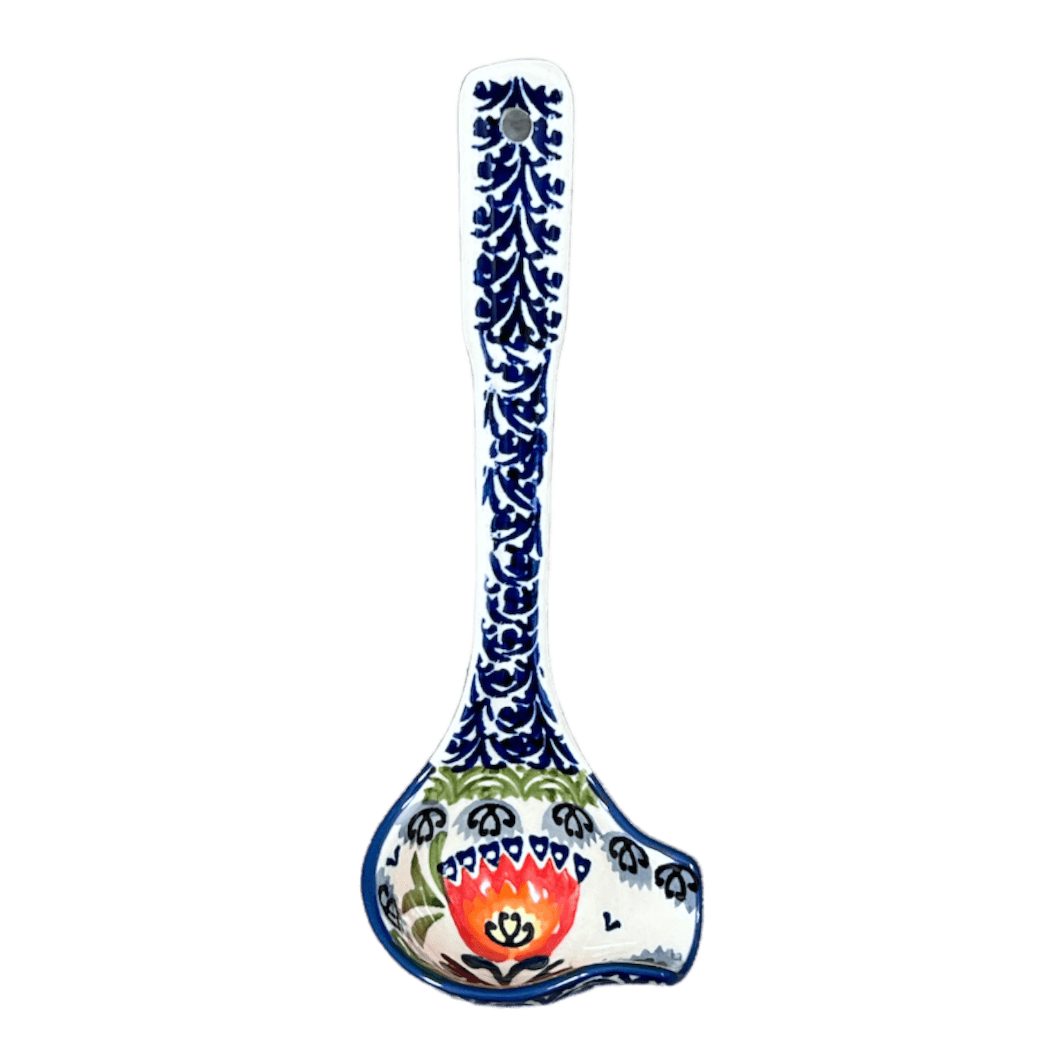 Each ladle is a testament to the artistry of its creator, bearing the prestigious "UNIKAT" stamp, which signifies the highest level of craftsmanship. This Signature series item is meticulously hand-painted by the most accomplished artists at Manufaktura in Boleslawiec, Poland. These artists not only design these exquisite patterns but also oversee every step of the production process, ensuring that each piece is as perfect as the last. The limited availability of these pieces makes them not just functional utensils but treasured collectibles, promising to add a touch of luxury and exclusivity to your kitchenware collection.