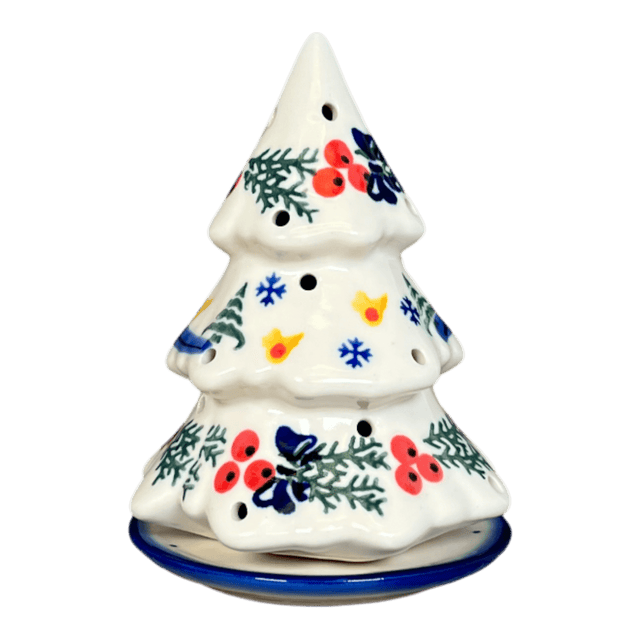Luminary, Christmas Tree, 5", WR (WR44A) in "Bows in Snow" by W.R. Ceramika | WR44A-WR15