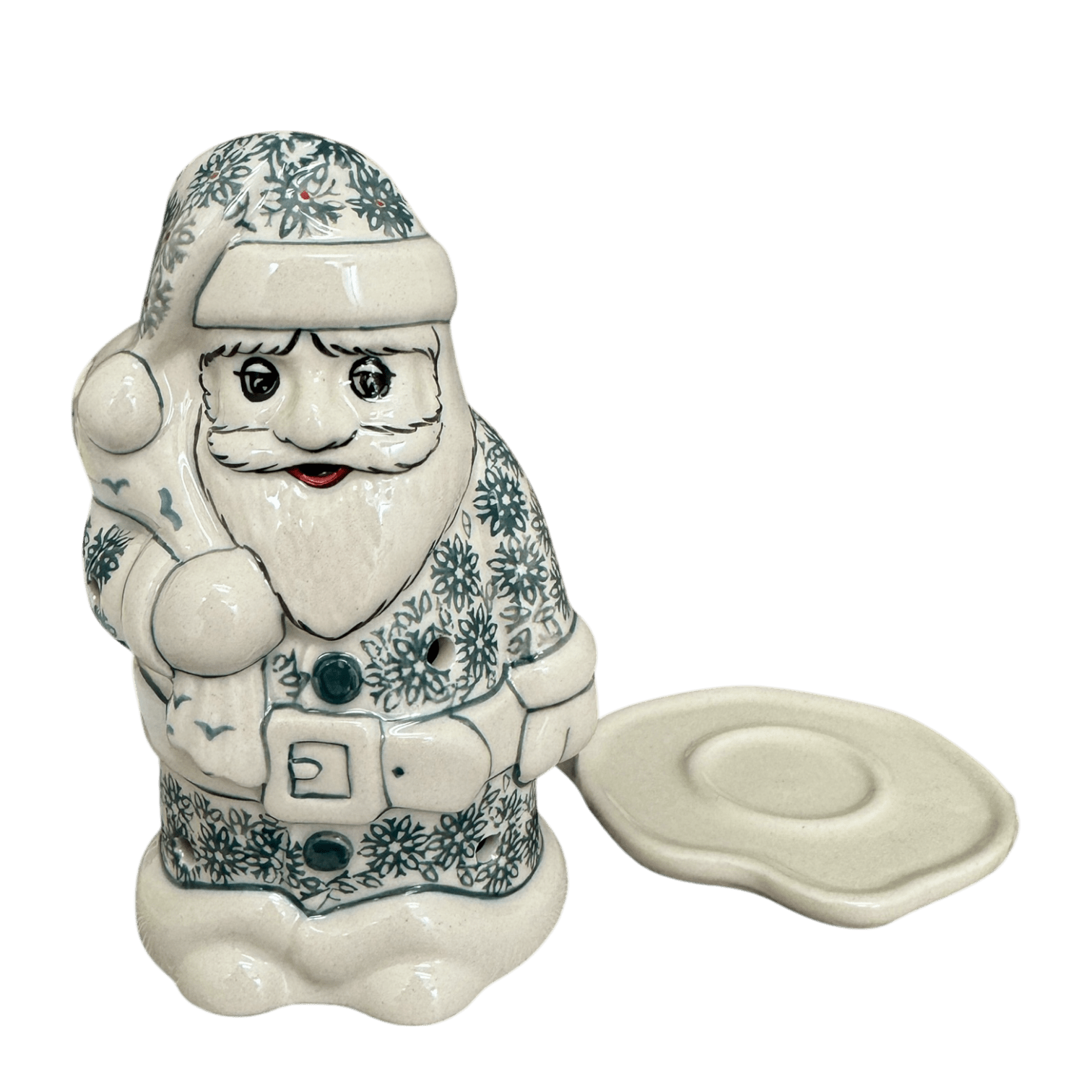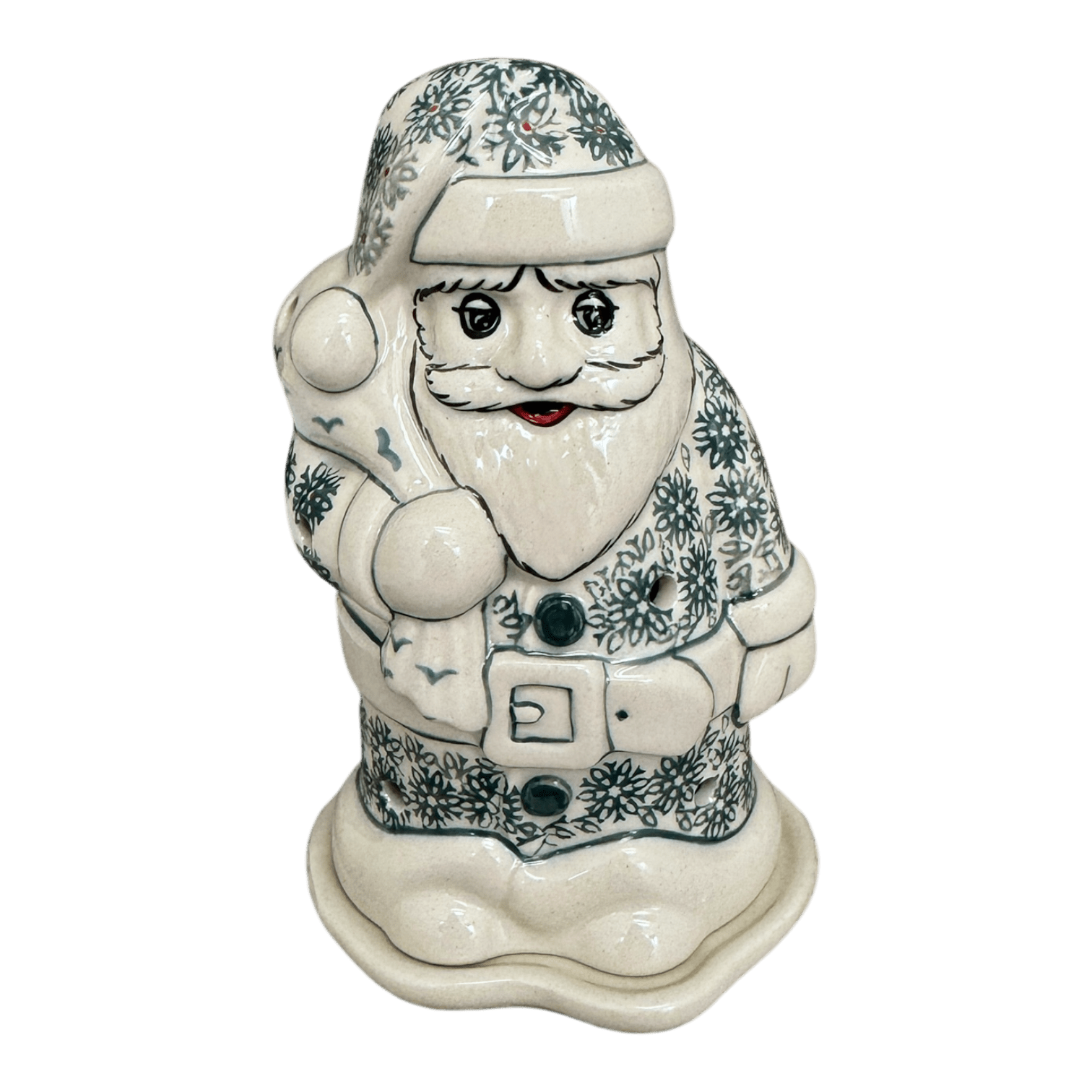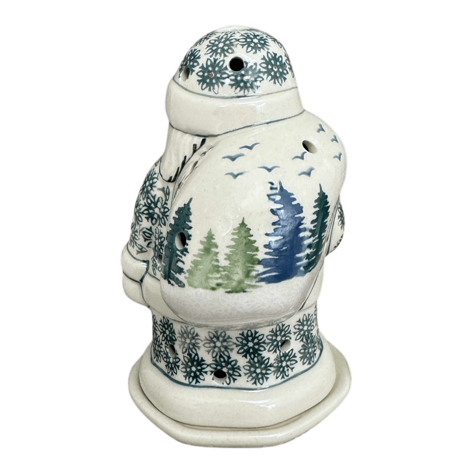 Imagine the soft, enchanting glow of candlelight emanating from a beautifully handcrafted Polish Pottery Luminary. This delightful Santa-shaped luminary stands at 6.25 inches and is lovingly made by the skilled artisans of Manufaktura in the serene "Pine Forest" pattern. As you light a tealight within (be it a flickering real flame or a safe, battery-operated light), watch as the warm light dances across the room, casting playful shadows and creating a cozy, inviting atmosphere perfect for the holiday season.