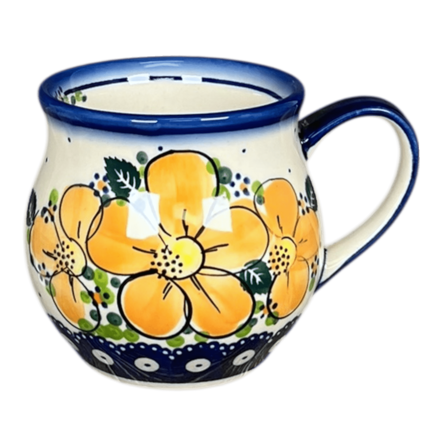 Nothing beats a hot cup of coffee or tea in a beautiful, handmade, hand-painted Polish pottery belly mug!