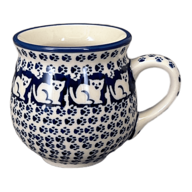 Are you tired of starting your day off with a plain, boring mug? Look no further! Introducing the Polish Pottery 7 oz. Belly Mug by Manufaktura in the captivating "Kitty Cat Path" pattern (KOT6). This mug is not just your ordinary coffee or tea mug; it's a work of art that will make your mornings more exciting!