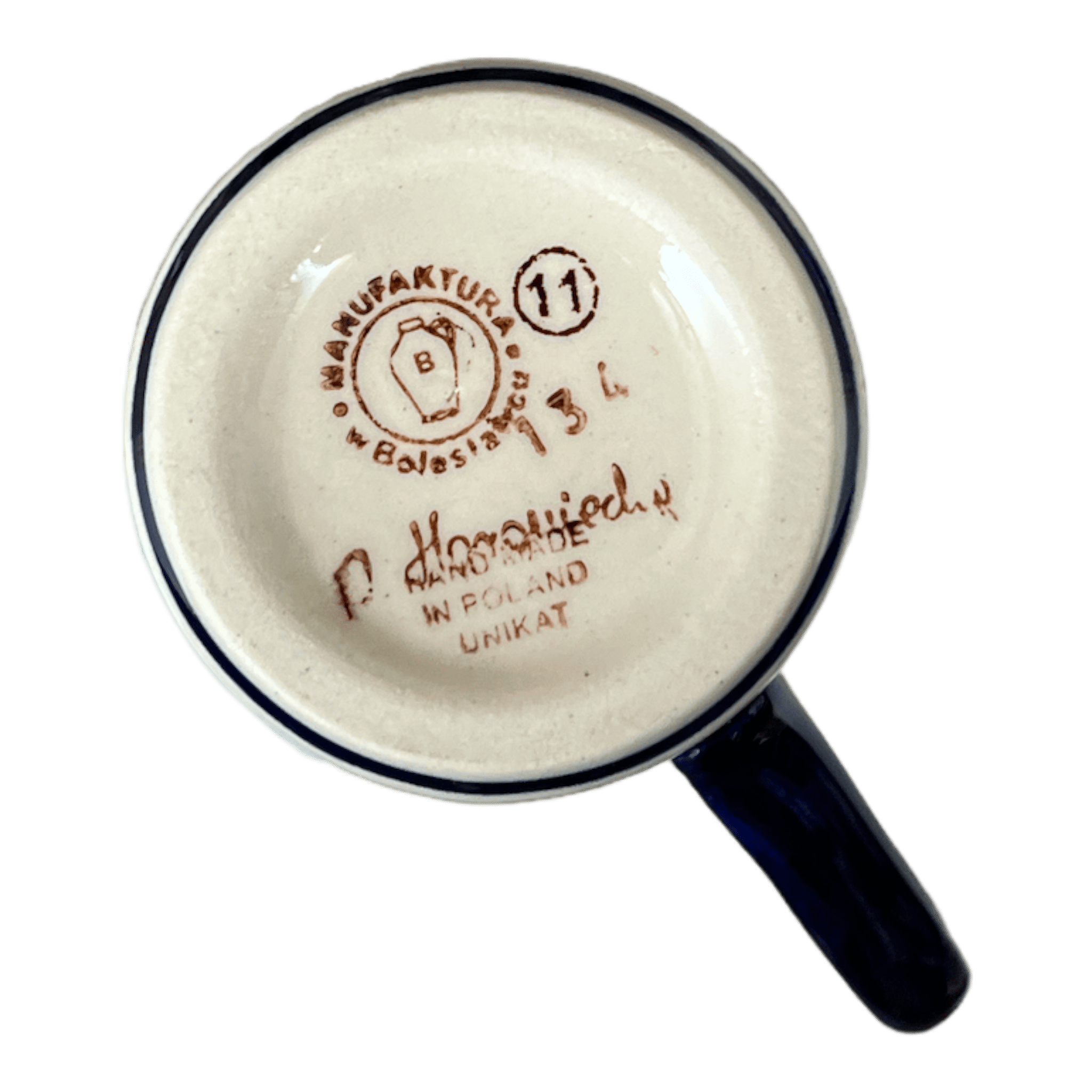 Tall and slim, these 12 oz. Polish pottery coffee mugs keep coffee and tea hot for longer periods of time!