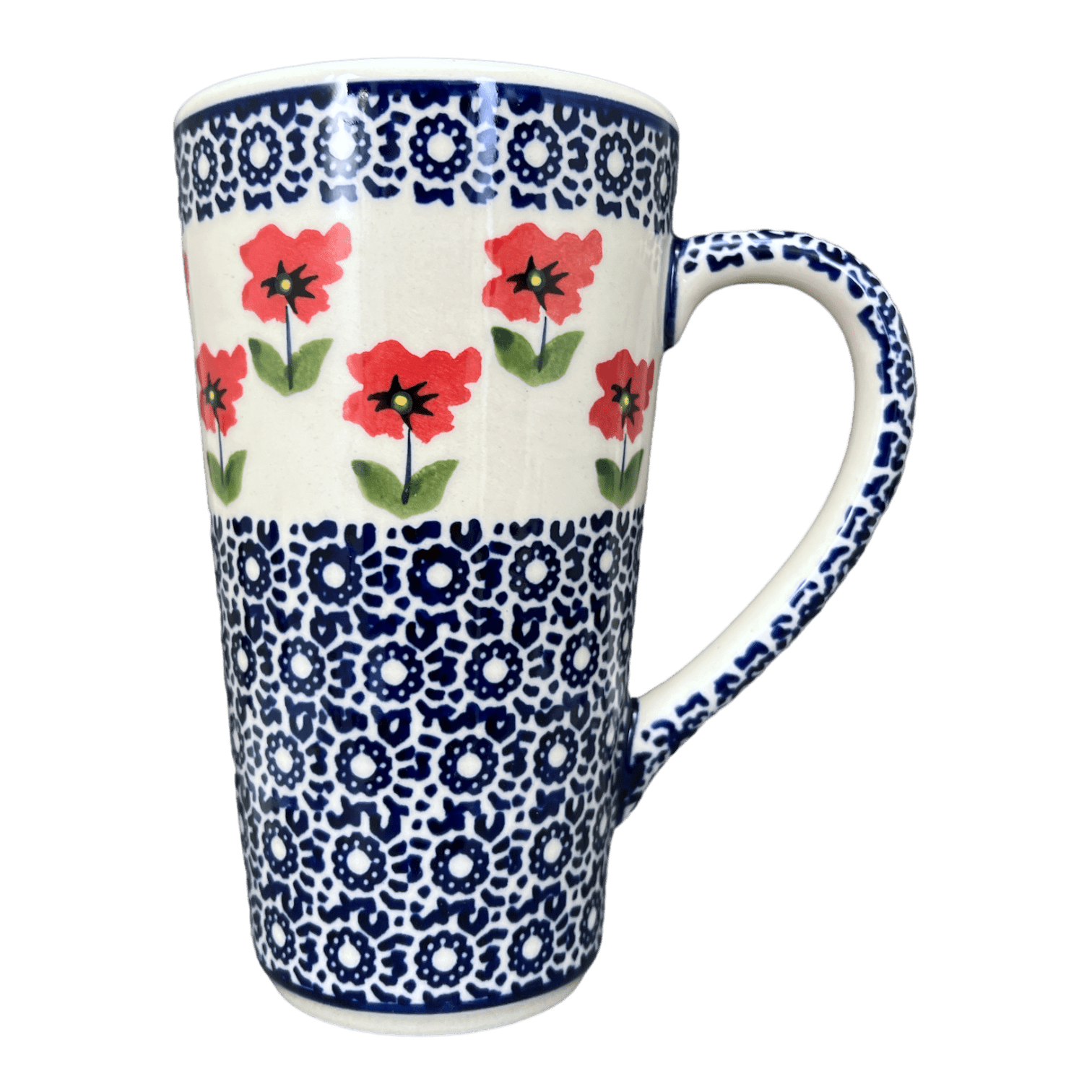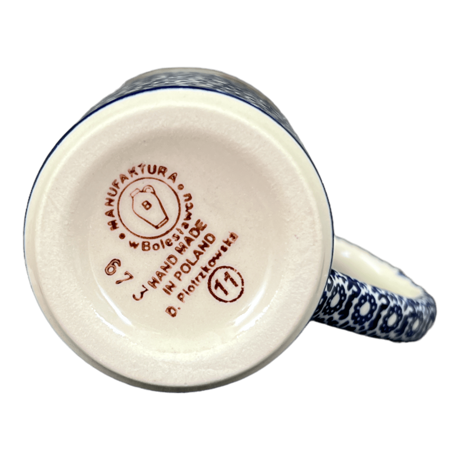 What sets this mug apart is its rich heritage of craftsmanship, where each piece is hand-painted by skilled artisans using the "punching" technique of hand stamping. This method brings to life the patterns inspired largely by nature, ensuring that no two mugs are exactly alike. This variability adds a unique personal touch to each piece, making it not just a mug, but a keepsake. Despite its traditional pattern, which is one of the most recognizable in Polish pottery, it boasts a modern functionality. It is perfectly safe for use in the dishwasher, microwave, and even the oven up to 425 degrees. Plus, it’s crafted from materials that are not only tough and durable but also free of lead, nickel, and cadmium, ensuring safety and longevity.