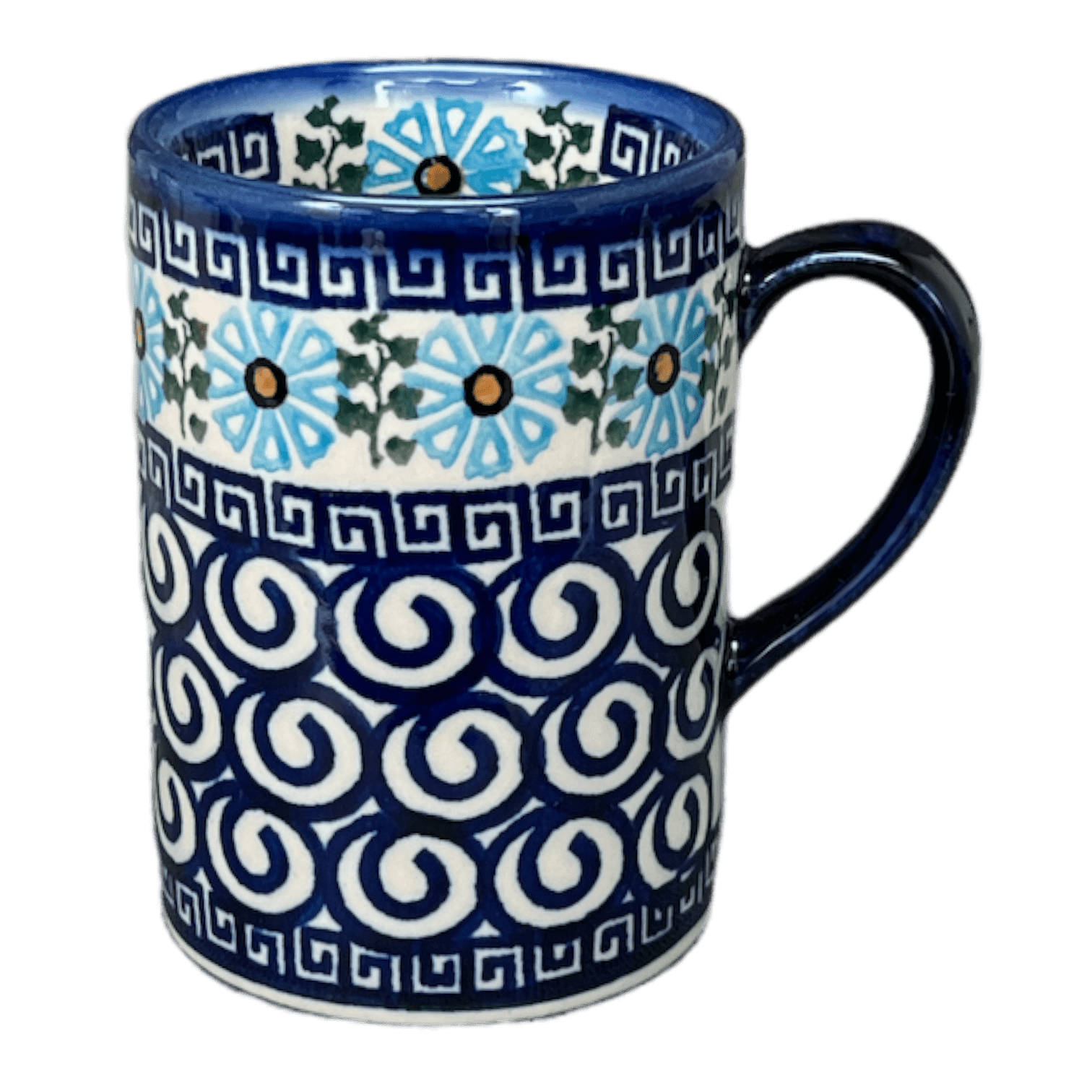 Each mug is a testament to the traditional artistry of Boleslawiec, Poland, where skilled artisans use the time-honored "punching" technique to hand stamp each unique design. The "Blue Daisy Spiral" pattern falls under the Traditional category—simple yet profoundly captivating designs that are highly recognizable in the world of Polish pottery. Since these patterns are created by a diverse group of artists, each mug carries subtle variations that make it uniquely yours. Not just a mug, it's a piece of Polish heritage, right in your hands.