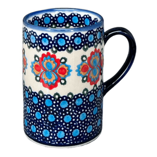 This delightful 8 oz straight mug is perfectly sized for the ultimate comfort grip, making it a practical piece for those with limited cabinet space yet unwilling to compromise on style. The design not only captures the essence of Polish heritage but also the incredible skill of local artisans who hand-paint each piece with precision. As you rotate the mug, you'll discover a charming border of small blue flowers with light blue centers, encircled by a ring of multi-colored blossoms. The beauty of these mugs lies in their uniqueness, with slight variations that tell a story of individual craftsmanship and artistic freedom.