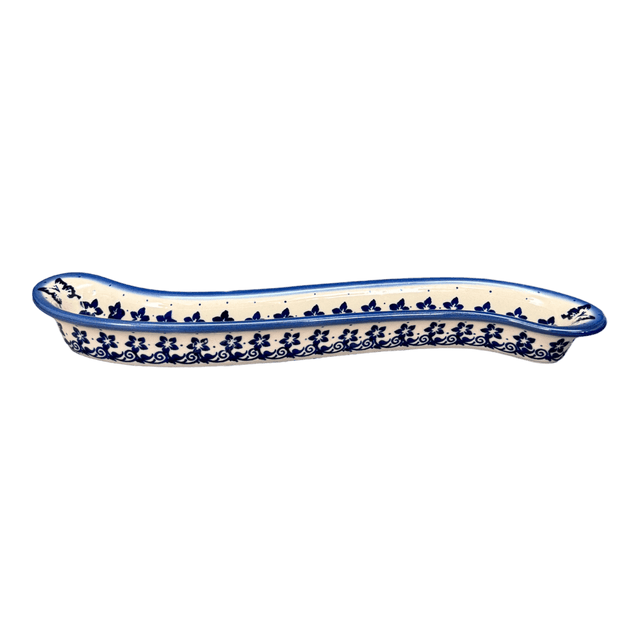 Imagine a dinner party where every detail is perfect, right down to the charming and artistic vessel cradling your olives. Enter the Polish Pottery Olive Boat, crafted in a sinuous curve that elegantly stretches 13 inches in length. This isn't just any olive boat; it's a piece of functional art, adorned with the mesmerizing "Butterfly Blues" pattern by the talented Andy. The design, vibrant with blue butterflies fluttering across a crisp white background, adds a whimsical touch to your table setting, making each olive picked an experience rather than just an appetizer.