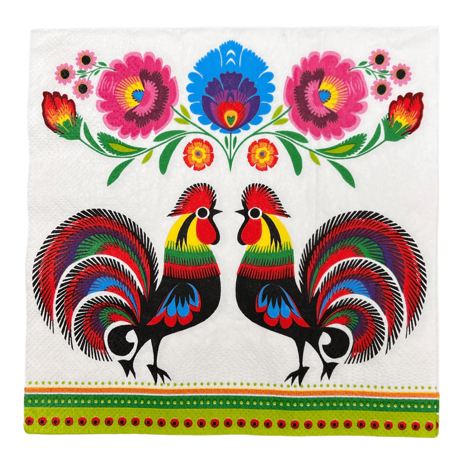Paper Dinner Napkins in "Two Roosters" by MAKI | NAPKIN-2ROOSTERS
