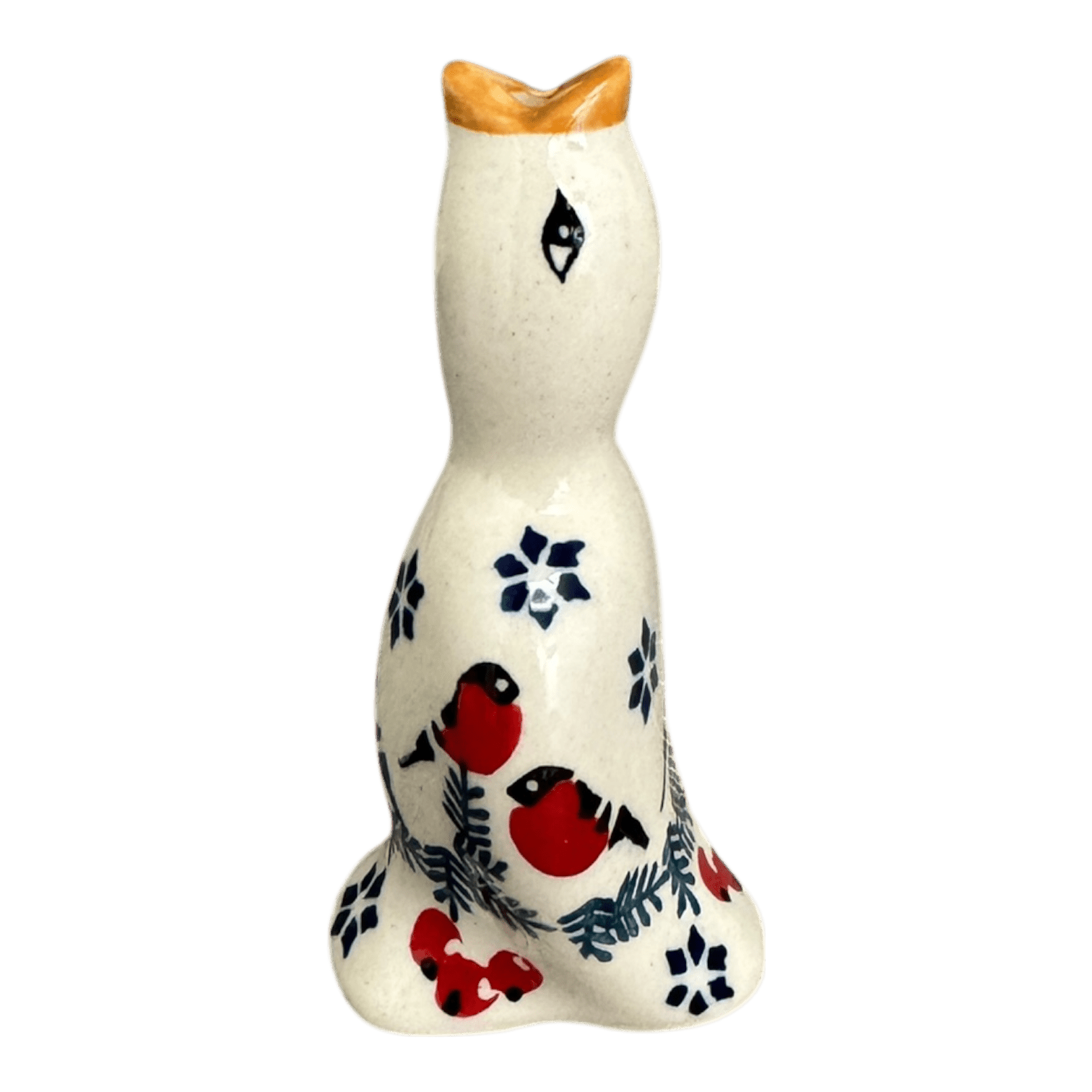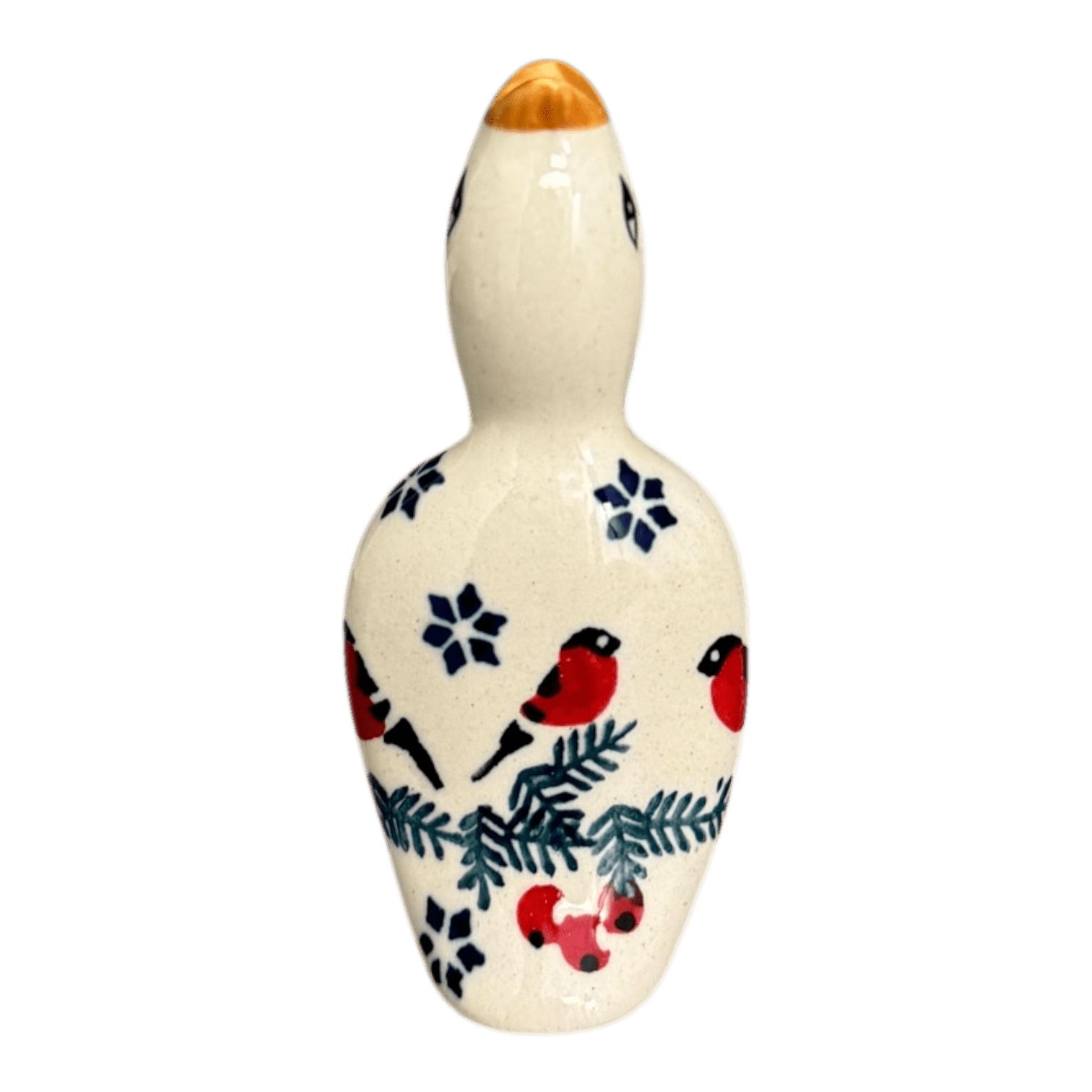 Introducing the charming Polish Pottery Pie Bird from Manufaktura, a delightful kitchen accessory that not only adds a dash of whimsy to your baking adventures but also ensures your pies come out perfect every time! Standing proud at 4 inches and adorned in the enchanting "Red Bird" pattern, this pie bird acts as a steam vent when placed in the center of your pie. As your creation heats up, steam escapes through the beak, preventing soggy crusts and volcanic filling eruptions. The festive design, featuring a quaint blend of red birds, evergreen wreaths, and delicate blue snowflakes against a crisp white background, brings a touch of traditional Polish artistry right into your kitchen.