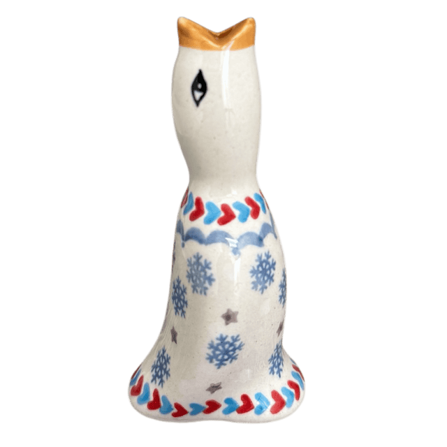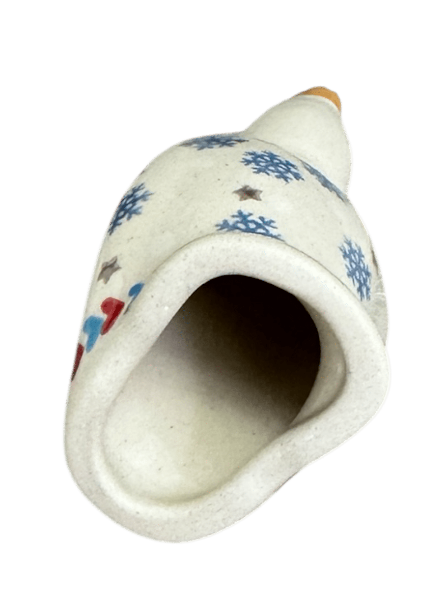 The "Snowflake Love" design of this pie bird isn't just any pattern; it's a Unikat pattern, which translates to "Unique" in Polish. This level of artistry is reserved for designs that require meticulous attention to detail and feature a richer palette of colors and intricate elements. Picture tiny blue snowflakes delicately dancing on a pristine white background, bordered with miniature hearts in shades of blue and red—a design so detailed and exquisite, it’s no wonder it carries the Unikat stamp of exclusivity. Hand-painted by a select group of skilled artisans in Boleslawiec, Poland, each pie bird is a unique piece of art, elevating your kitchen decor and baking experience.