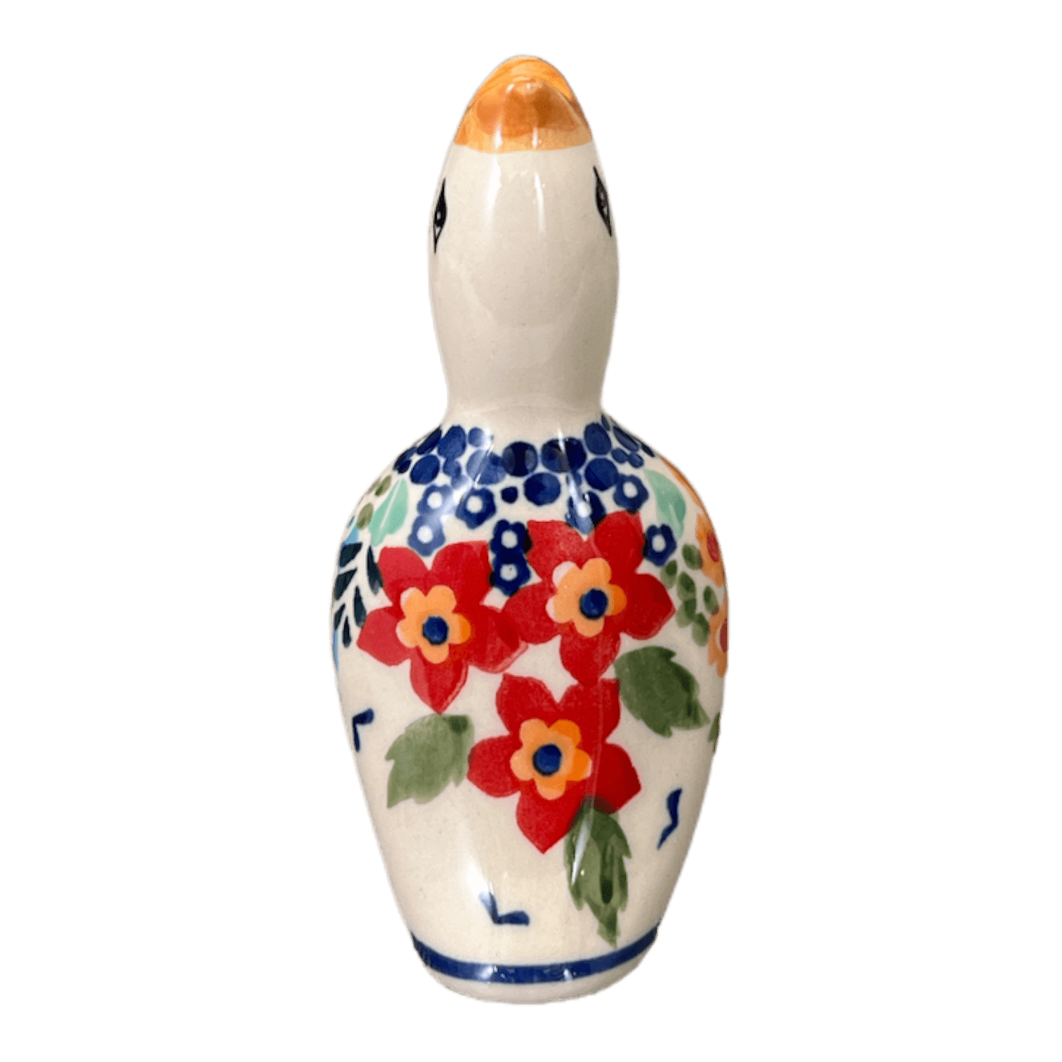Imagine the delightful chirp of a bird right in your kitchen, but instead of a feathery friend, it's the charming Polish Pottery Pie Bird, a brilliant addition to your baking arsenal! Standing at 4 inches and crafted by the esteemed artisans at Manufaktura, this pie bird isn't just a tool; it's a centerpiece. Dressed in the stunning "Brilliant Garden" pattern, it features a tapestry of vibrant red, yellow, blue, and cadet gray flowers blooming against a crisp white background. As you slide your next pie into the oven, simply nestle this pie bird in the center, and watch as it expertly allows steam to escape through its beak, ensuring your crust remains flaky and your filling perfectly contained.