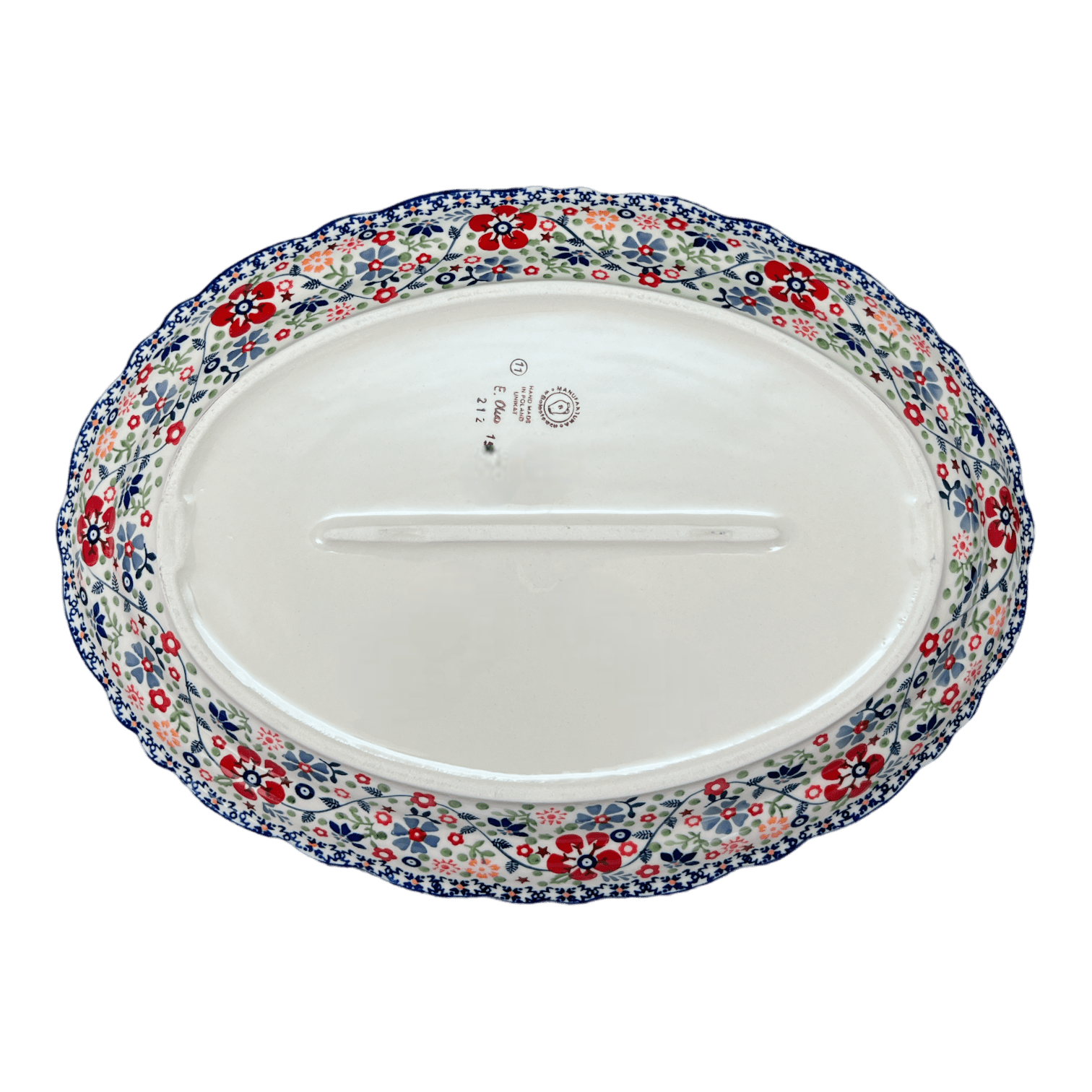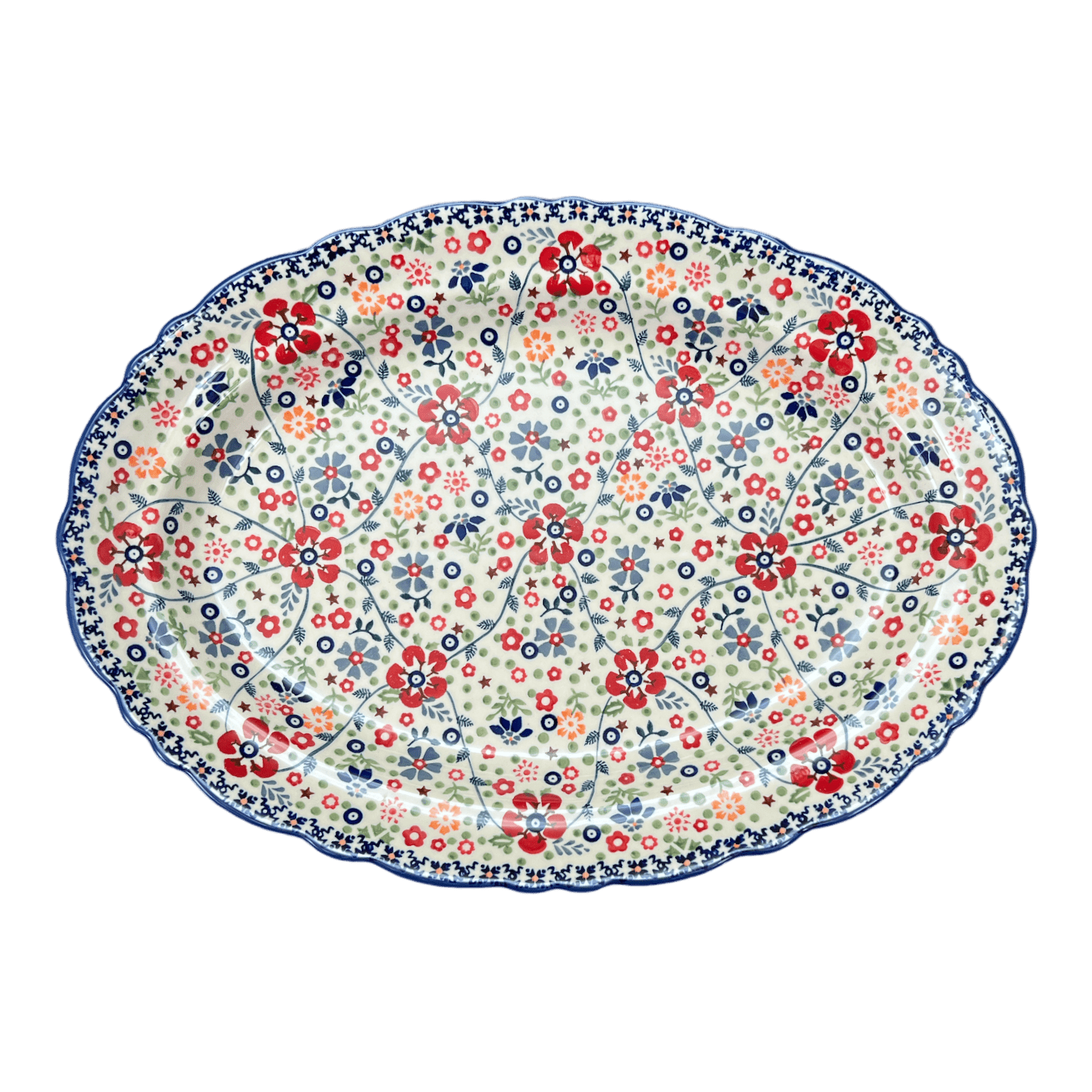 Platter, Oval, Scalloped, 16.75" x 12.25" Large in "Full Bloom" by Manufaktura | P165S-EO34 is backordered and will ship as soon as it is back in stock.