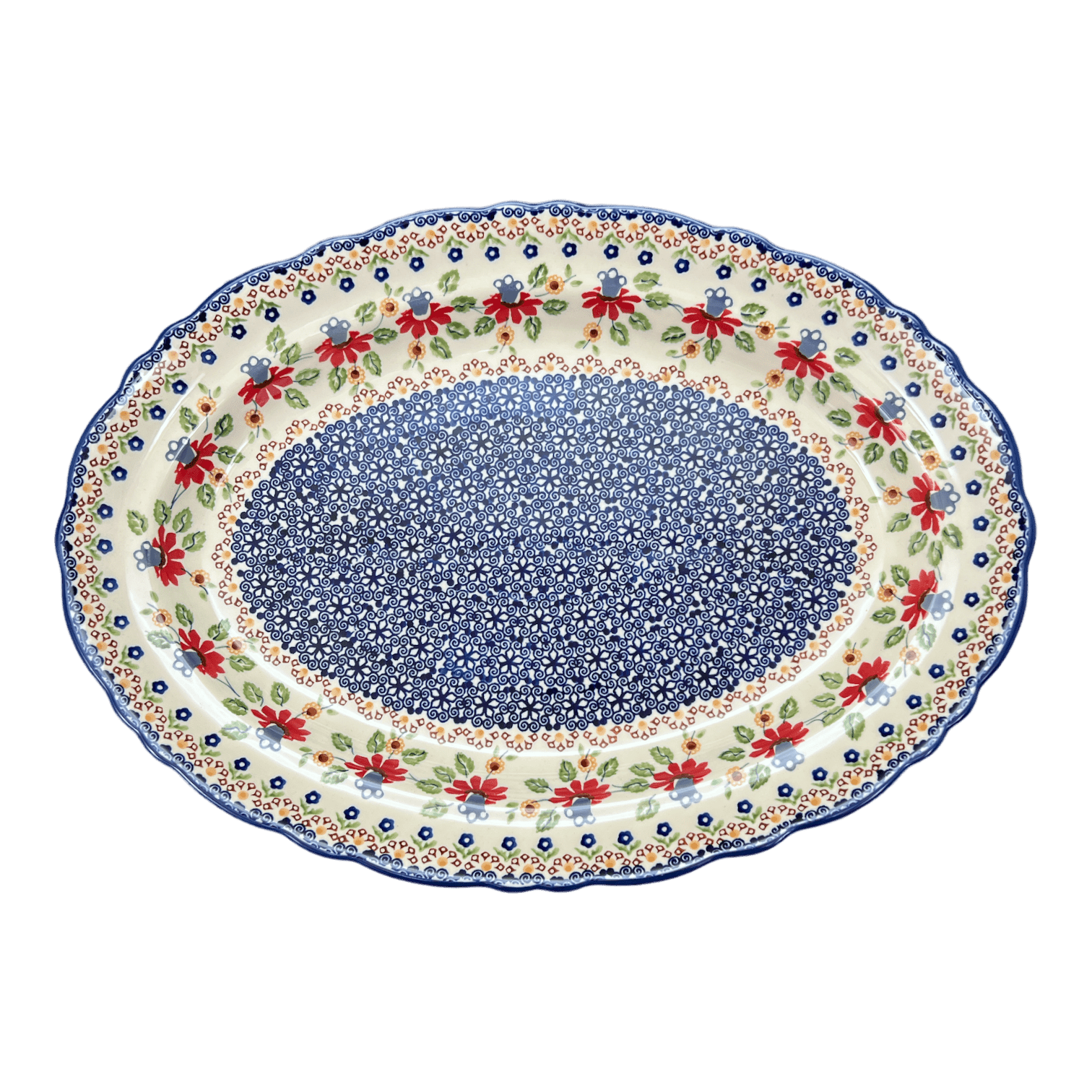 Platter, Oval, Scalloped, 16.75" x 12.25" Large in "Mediterranean Blossoms" by Manufaktura | P165S-P274 is backordered and will ship as soon as it is back in stock.