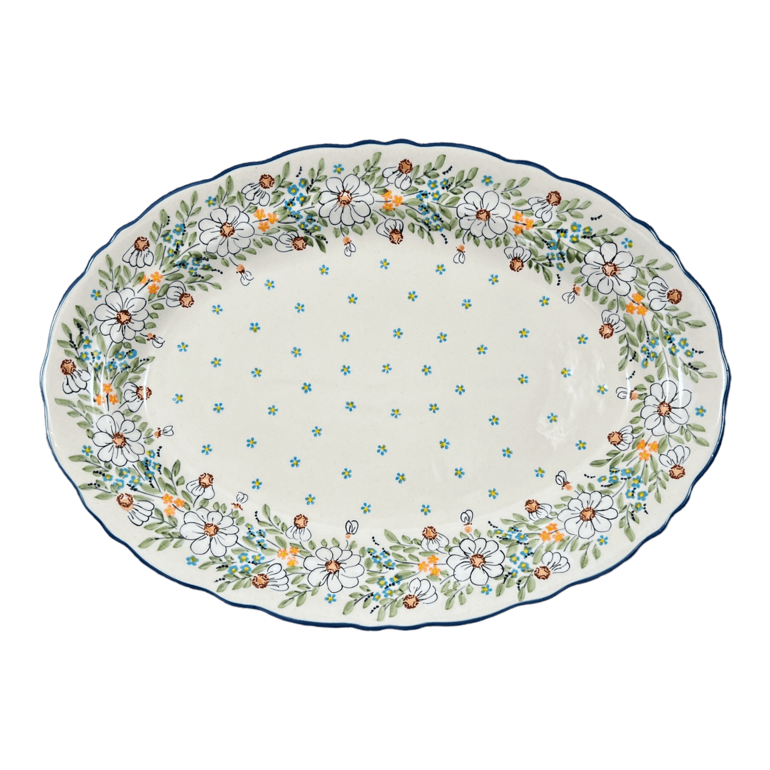 Platter, Oval, Scalloped, 16.75" x 12.25" Large in "Daisy Bouquet" by Manufaktura | P165S-TAB3