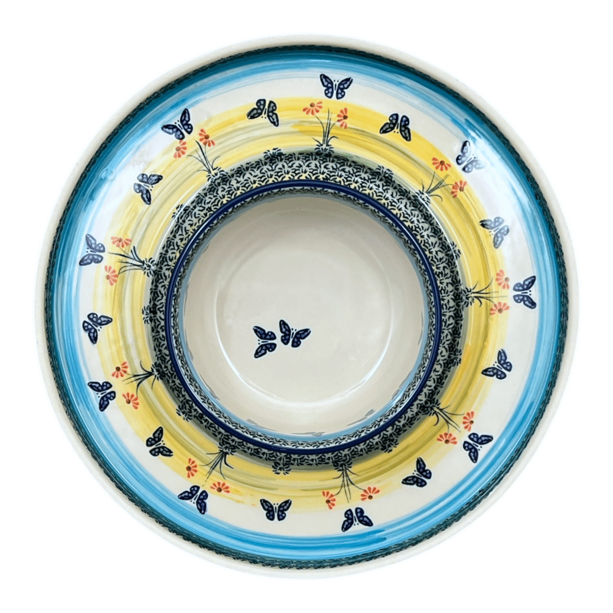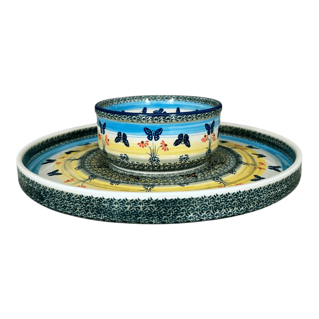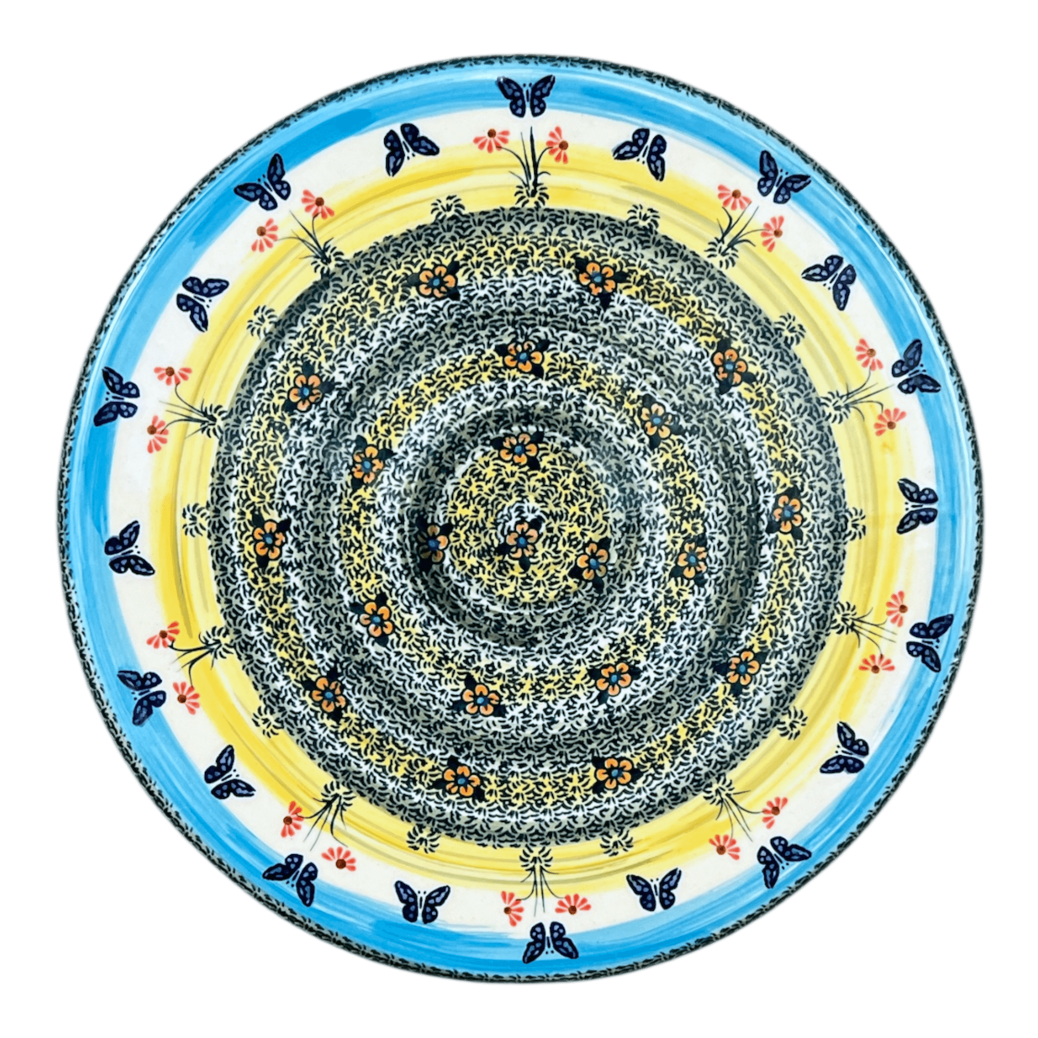 Introducing the enchanting Manufaktura Polish Pottery Platter, a true masterpiece that marries functionality with exquisite artistry. At a generous 12.75 inches, this round platter features the delightful "Butterflies in Flight" pattern, adorned with vibrant butterflies and delicate floral designs in a symphony of blue, yellow, green, and orange hues. Perfect for any gathering, this versatile piece effortlessly transitions from a charming cake plate to a stylish chip and dip or hors d'oeuvres platter, ensuring it's not just a dish, but the highlight of your table decor!