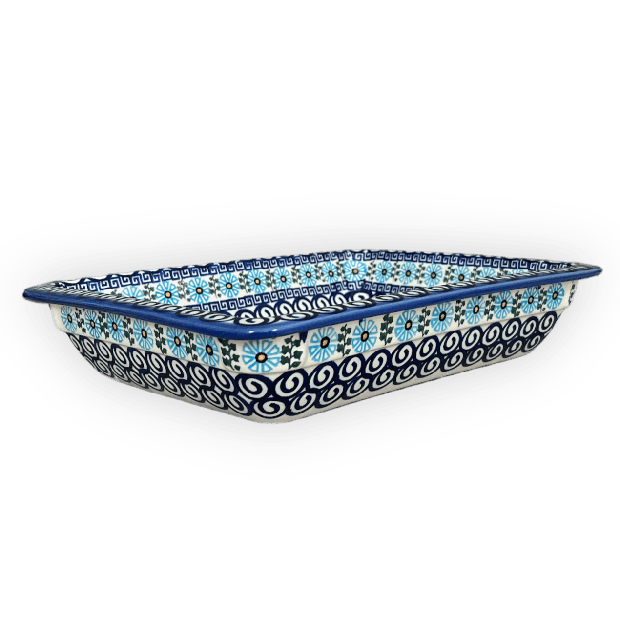 Imagine pulling a freshly baked lasagna from the oven, the cheese bubbling and golden, in a dish so beautiful it doubles as a centerpiece. Meet the Polish Pottery Rectangular Baking Dish by Andy, your new best friend in the kitchen. Crafted in the heart of Boleslawiec, Poland, this dish features the charming "Blue Daisy Spiral" pattern, a delightful dance of light blue flowers twirling around dark blue spirals. The design is not just a treat for the eyes but also a nod to traditional craftsmanship, hand-stamped by skilled artisans using the age-old "punching" technique. This dish isn’t just a cooking vessel—it’s a piece of art.